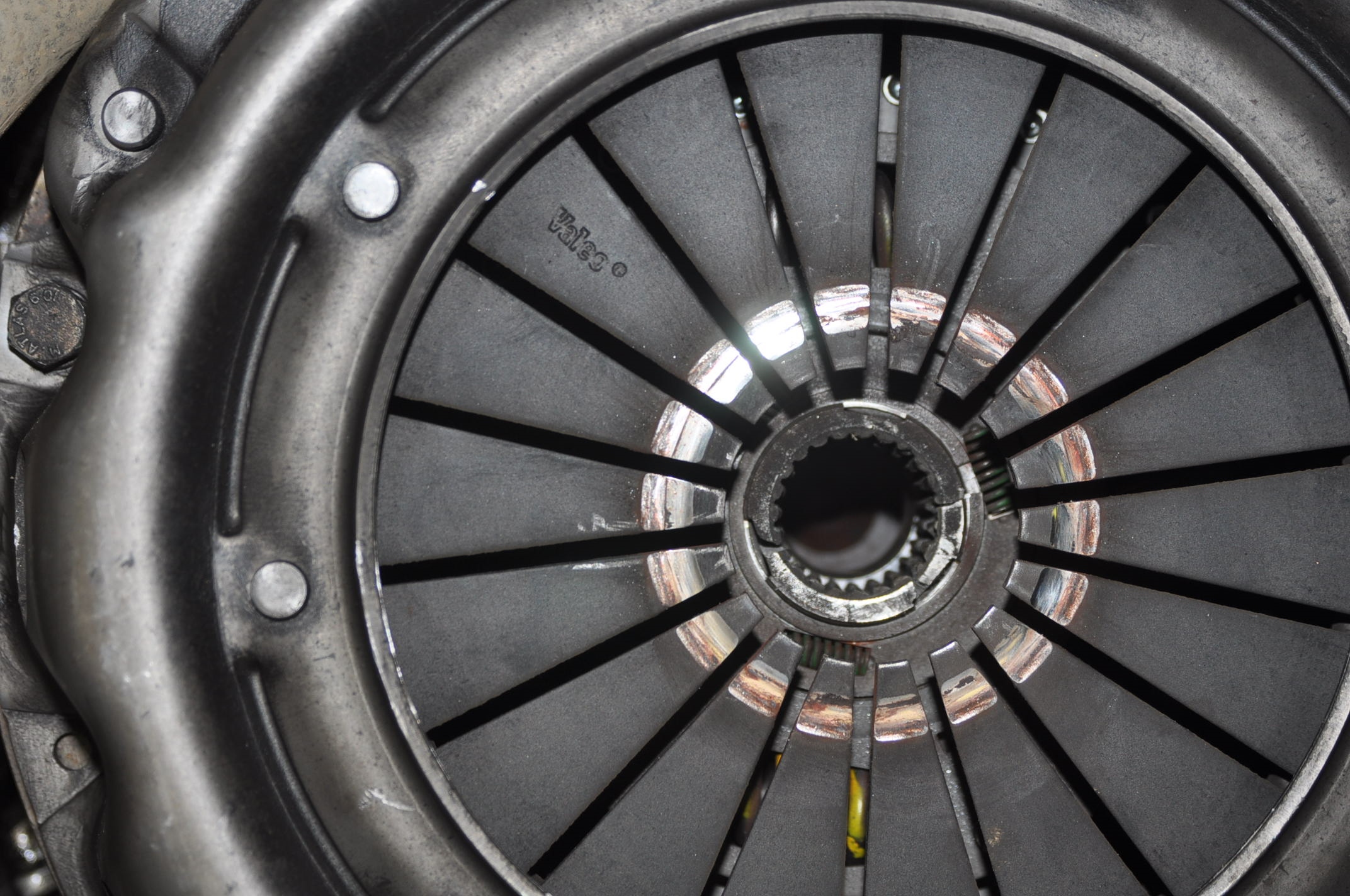 Bonne question, on peut voir sur ta photo du diaphragme du mécanisme à l'endroit où appuis le roulement de butée, que c'est très usè. Parfois le mal commence par lui, il y a des petits bout "d'ailette" qui partent. Donc lui il est mort, c'est sûr.Comment voir si l'embrayage est usé ? J'ai jamais eu de souci particulier.