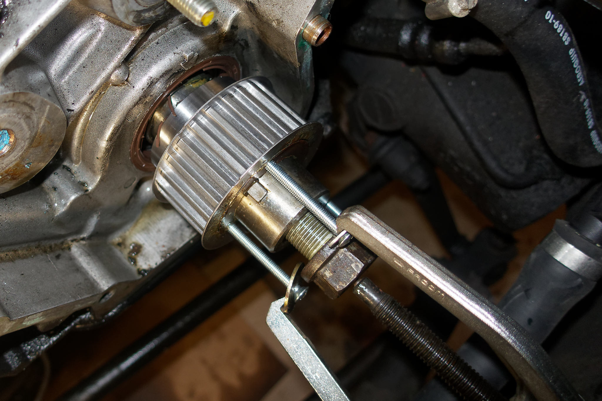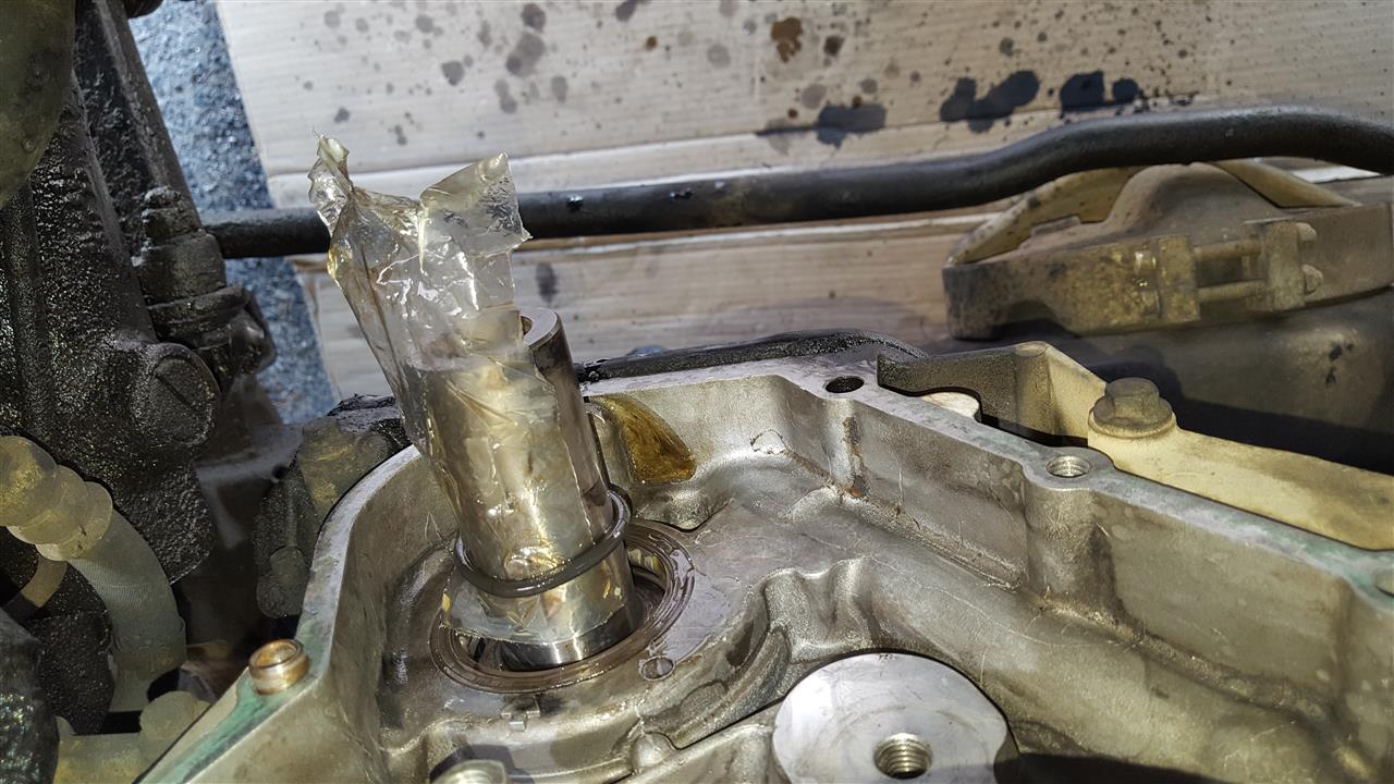 monter le joint neuf à la graisse NGL2 sur le pignon neuf et le pousser au fond avec l'ancien pignon et la grosse vis de serrage (penser à bien aligner sur les clavettes) ainsi le joint ne soufre pas.