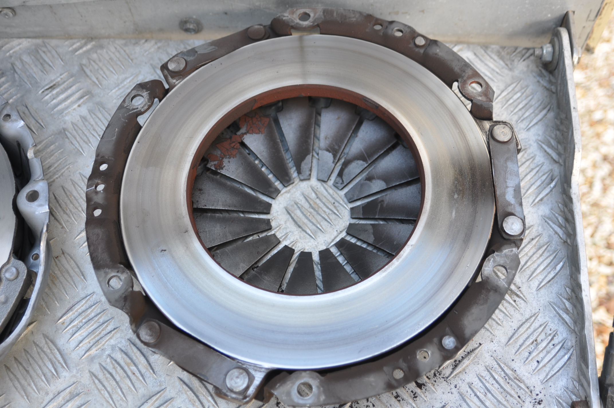 L'embrayage (disque et diaphragme) fonctionnant, je ne les ai pas changés. J'aurais dû changer le diaphragme à cause de l'usure décentrée.