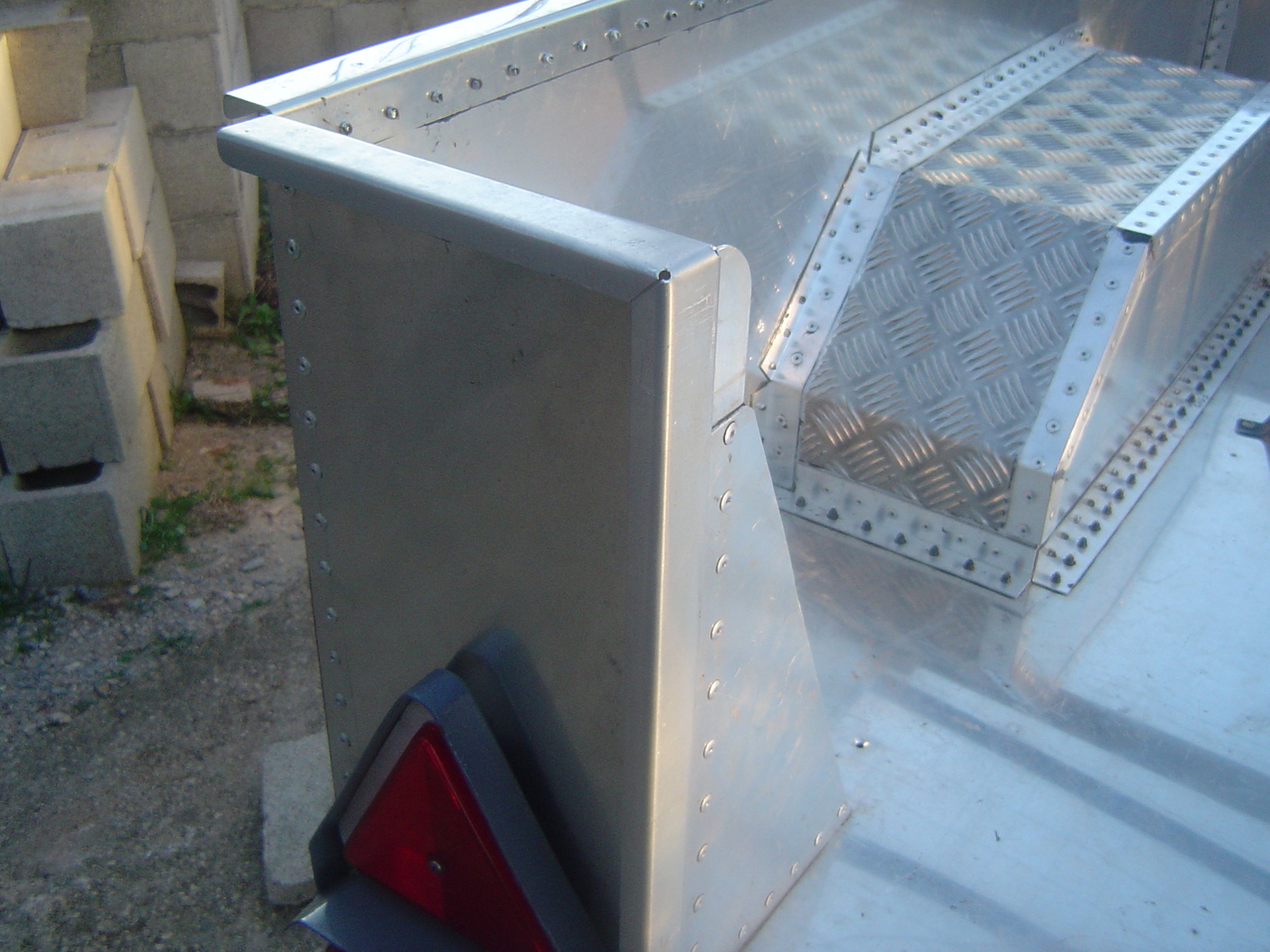 Il a fallu aussi renforcer l'arrière ,avant de fabriquer la ridelle, car du fait de la découpe de cette dernière, l'ensemble avait un manque de rigidité évident.