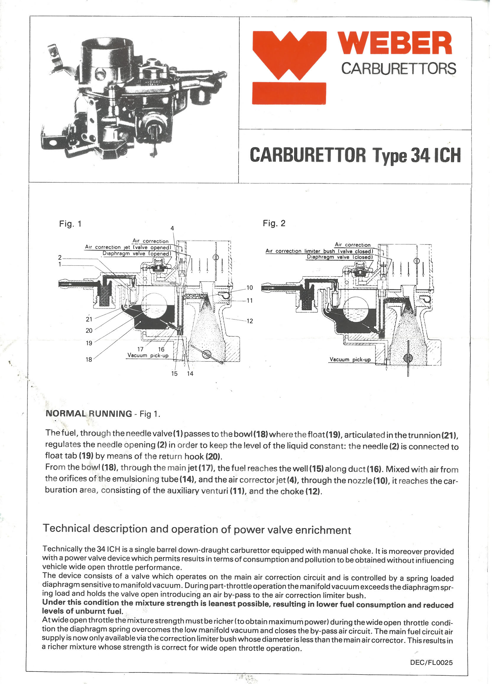 Un peu de documentation Weber sur le 34 ICH (générale, car c'est un carburateur de remplacement aftermarket qui s'adaptait sur de nombreux moteurs, dont chacun suppose son réglage propre) :
