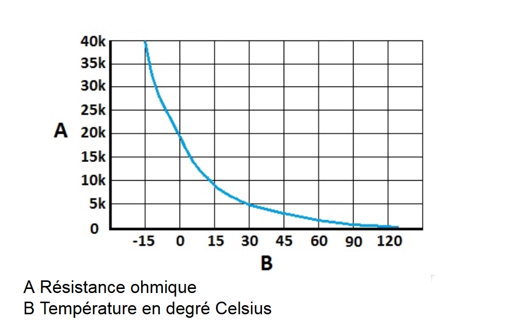 Sur cette caractéristique standard, mais qui pourrait s’apparenter à d'une sonde land, tu peux voir que la variation de température est exponentiel décroissante dans une première partie, puis peut-être considérée comme a peu près linéaire à partir de 30°C jusqu’à 120°C . A+