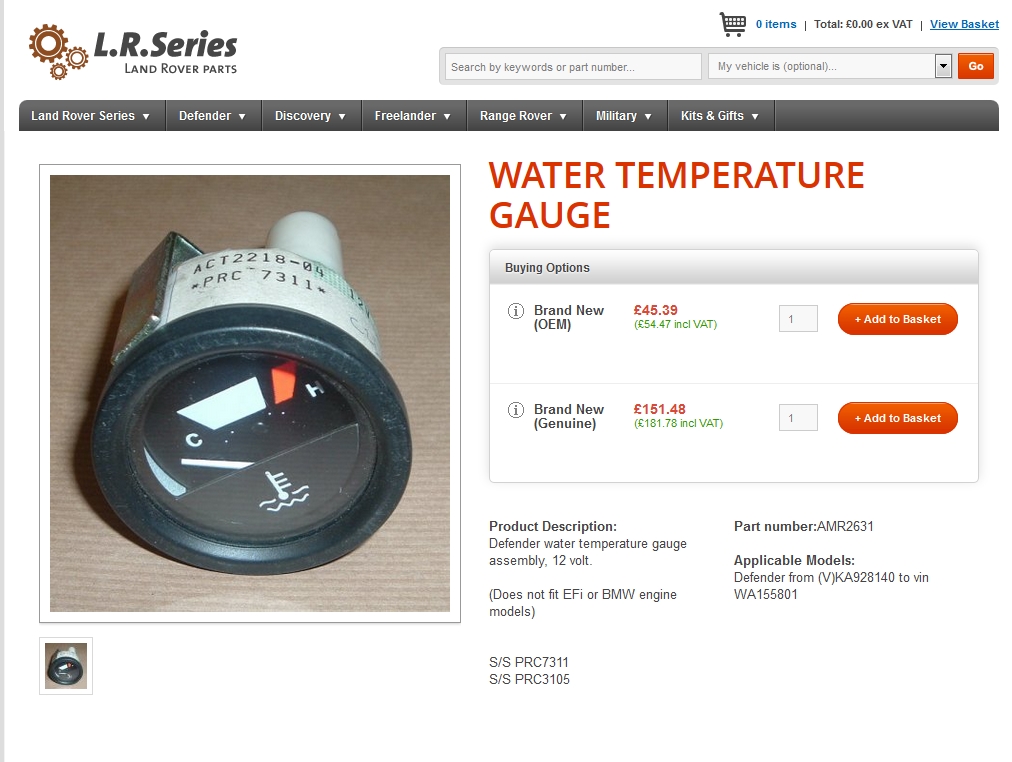 Oui, il s'agit bien de la pompe à eau. Pour les monomètres de température, c'est tous les mêmes du premier 110 de 83, jusqu'au dernier 300tdi en 98, après c'est leur système de fixation qui change sur le TD5 mais électriquement OK.