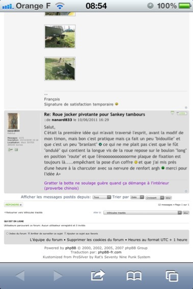 Il y a eu le même débat (android vs iphone) sur FF4x4 avec cette conclusion...Frédéric_Dept79 a écrit :C'est effectivement à priori le casKlug a écrit :Il semble aussi (mais ça il faudrait tester plus avant) que browser avec le navigateur du smartphone soit moins gênant sur un Android récent (grand écran, full screen) que sur l'iPhone...