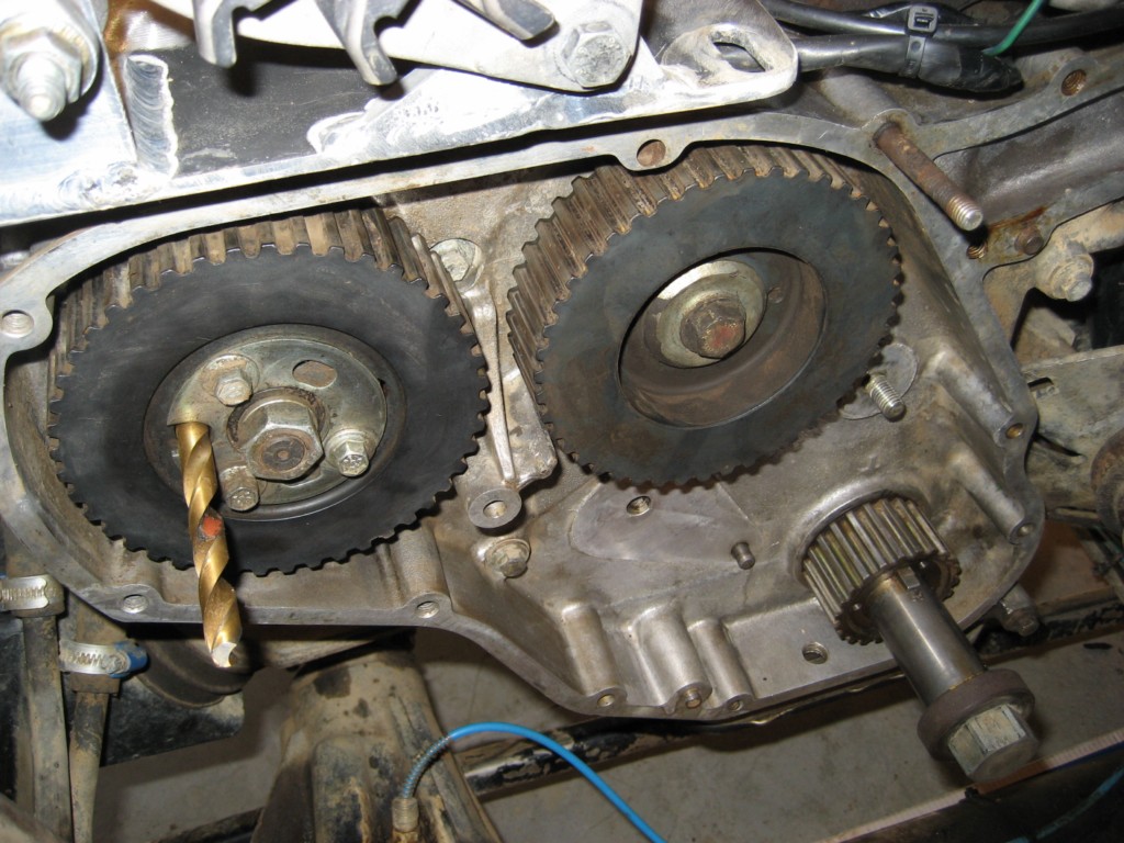 Laisse le foret en place si tu sort la poulie de la pompe, et bloc sa rotation en position (enlevant la rondelle en L et en resserant la vis pour être sur de sont blocage) C'est derrière le carter au pied de la pompe. N'oublie pas de la décoincer...
