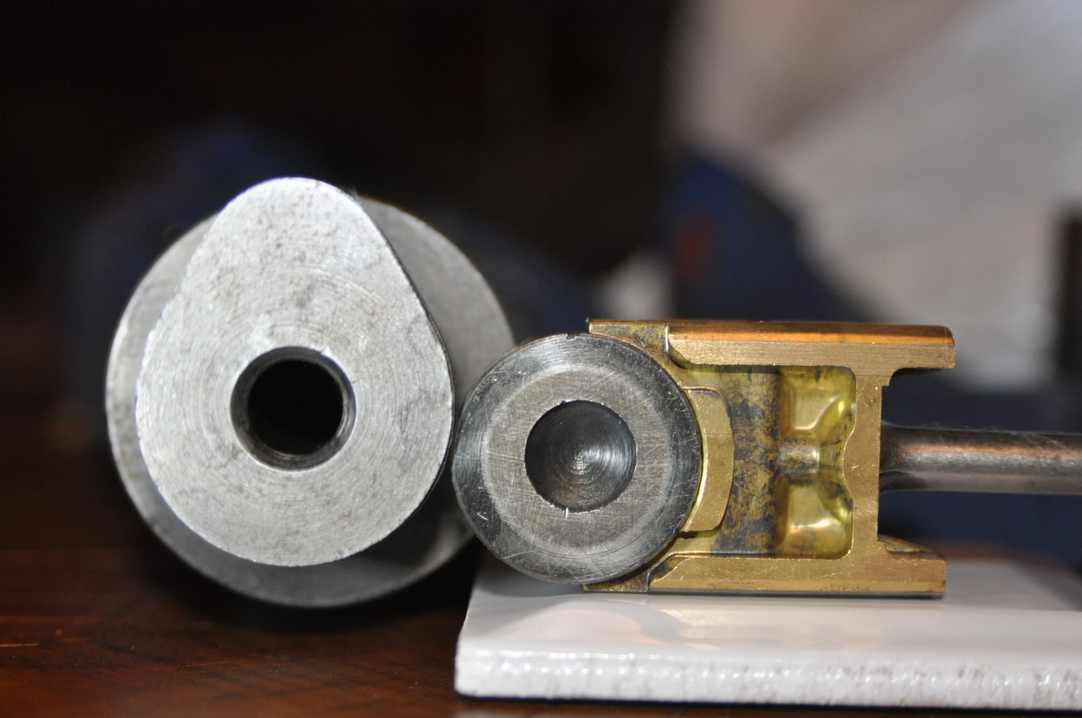 1) Tige: 2) poussoir bronze dans son guide: 3) Came/galet/poussoir bronze/tige: