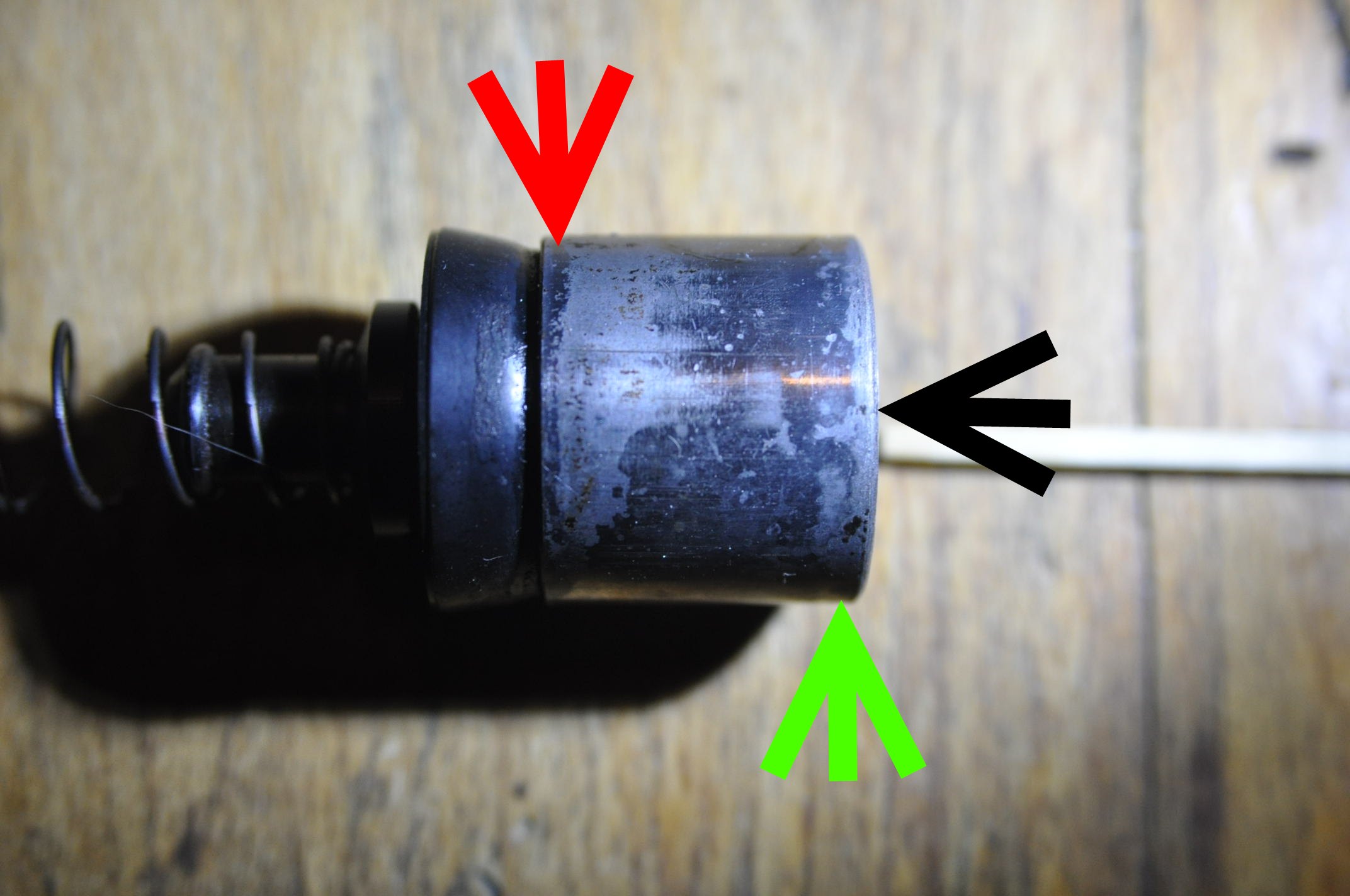 Le récepteur de l'exemple n'est pas encore trop usé, j'en ai vu des biens plus marqués. Si on tient compte du fait que le corps du récepteur est également usé et que l'on repositionne pas le doigt dans la même position lors du montage de la coupelle, cela peut laisser beaucoup de chances aux fuites ou coincement divers .