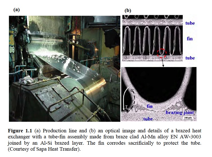 5/ Quoiqu'il en soit, cette zone de liaison par brasure entre tubes et ailettes établit une différence de potentiel intermétallique, 'sacrifiant' les ailettes au profit des tubulures.