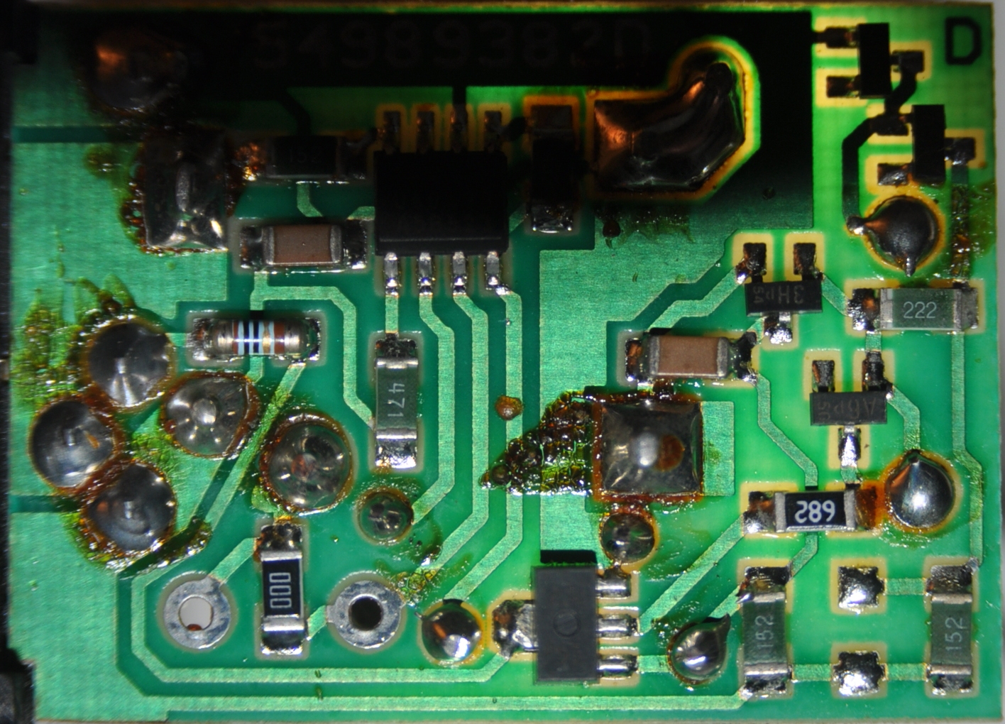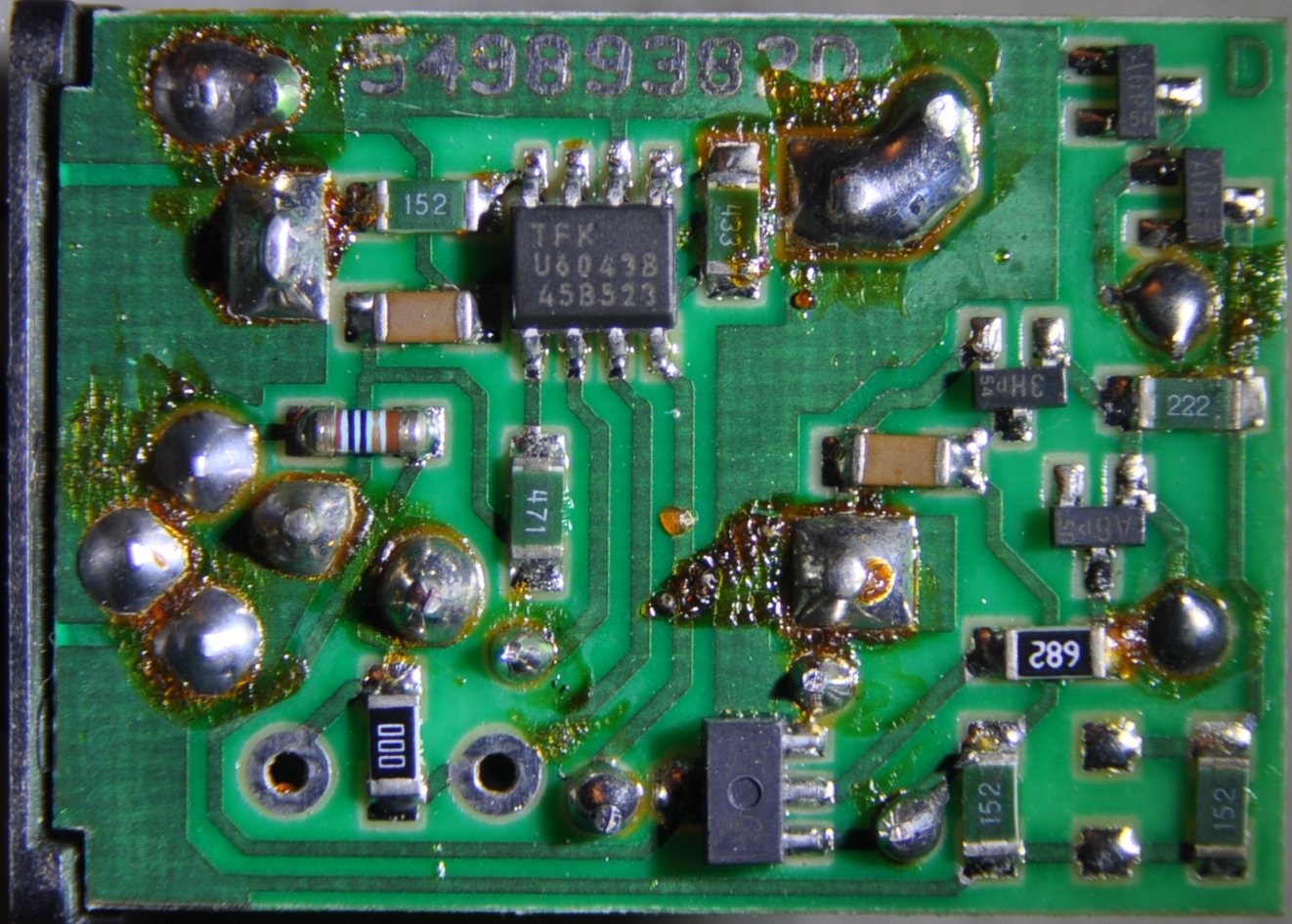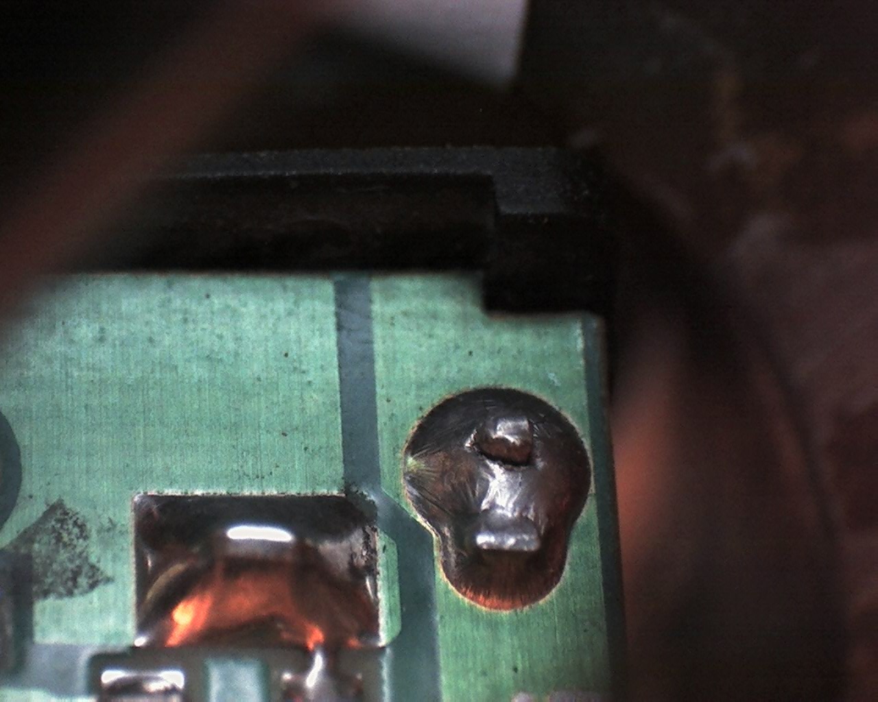 oui la felure est juste a ras de la grosse soudure que tu as entouré,du bord du circuit imprimé sur 6 a 7 mm.j'essai de poster des photos mais ca me dit que les fichiers ne sont pas valide,j'ai pourtant redimensionner les images pour quelles ne soit pas trop lourde.