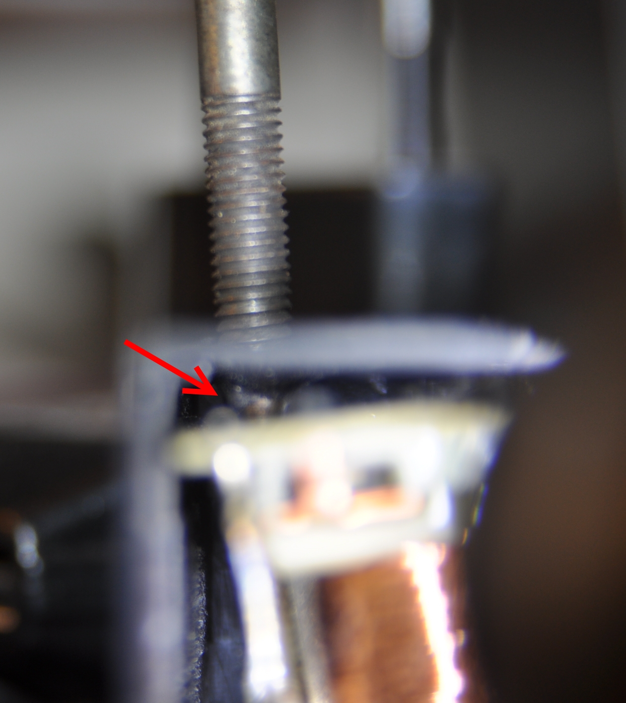 1) On peut voir que le bout de la vis a bien pénétrée à l'intérieur, son extrémité n'est pas filetée sur 5 mm et il y avait au moins trois filet marqué sur le plastique du couvercle. On voit où appuyait le bout de la vis au point de casser la plaque imprimé et de la sortir de ses glissières.