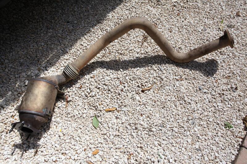 Par contre, je ne suis pas arrivé à tomber la partie centrale de l'échappement : les boulons sont bien rouillés et grippés, le dégrippant n'a pas fait de miracle et j'ai eu peur de casser en forçant comme un malade... J'ai donc simplement "poussé" le tout de côté... Ah, ces amateurs