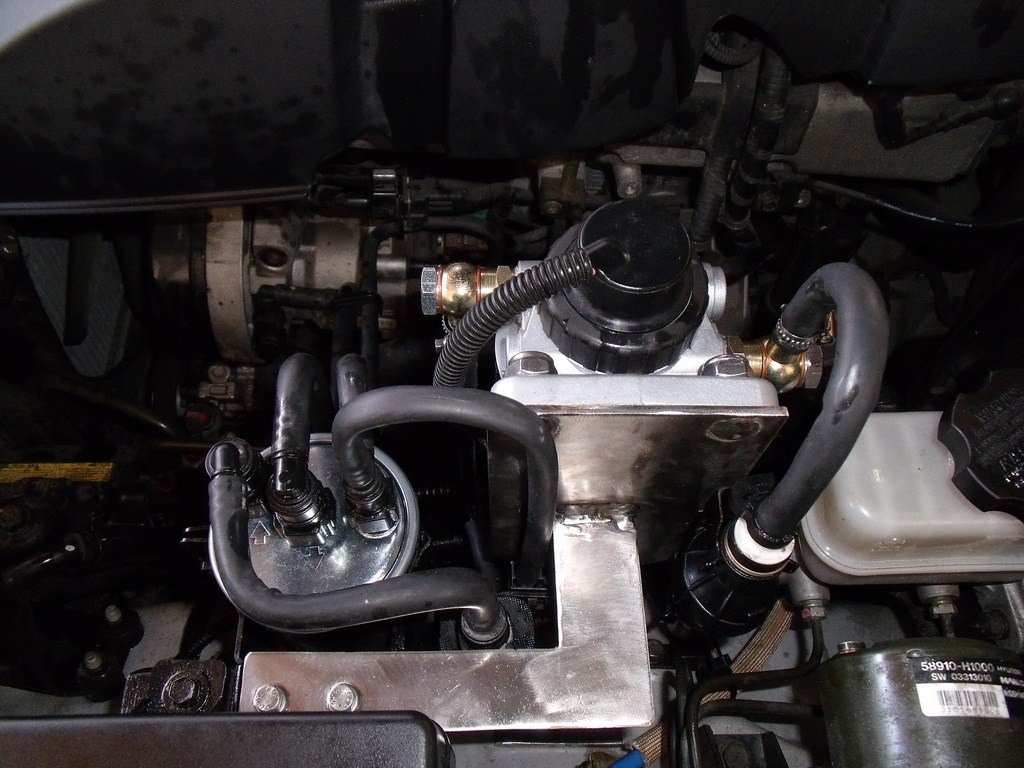 Préfiltre monté sur mon ancien 4x4 , c'est la même tête que j'ai monté sur le Def. J'ai jamais branché le réchauffeur. La poire d'amorçage montée d'origine sur le Terracan , elle est située avant le préfiltre (aspiration) comme sur le Defender .