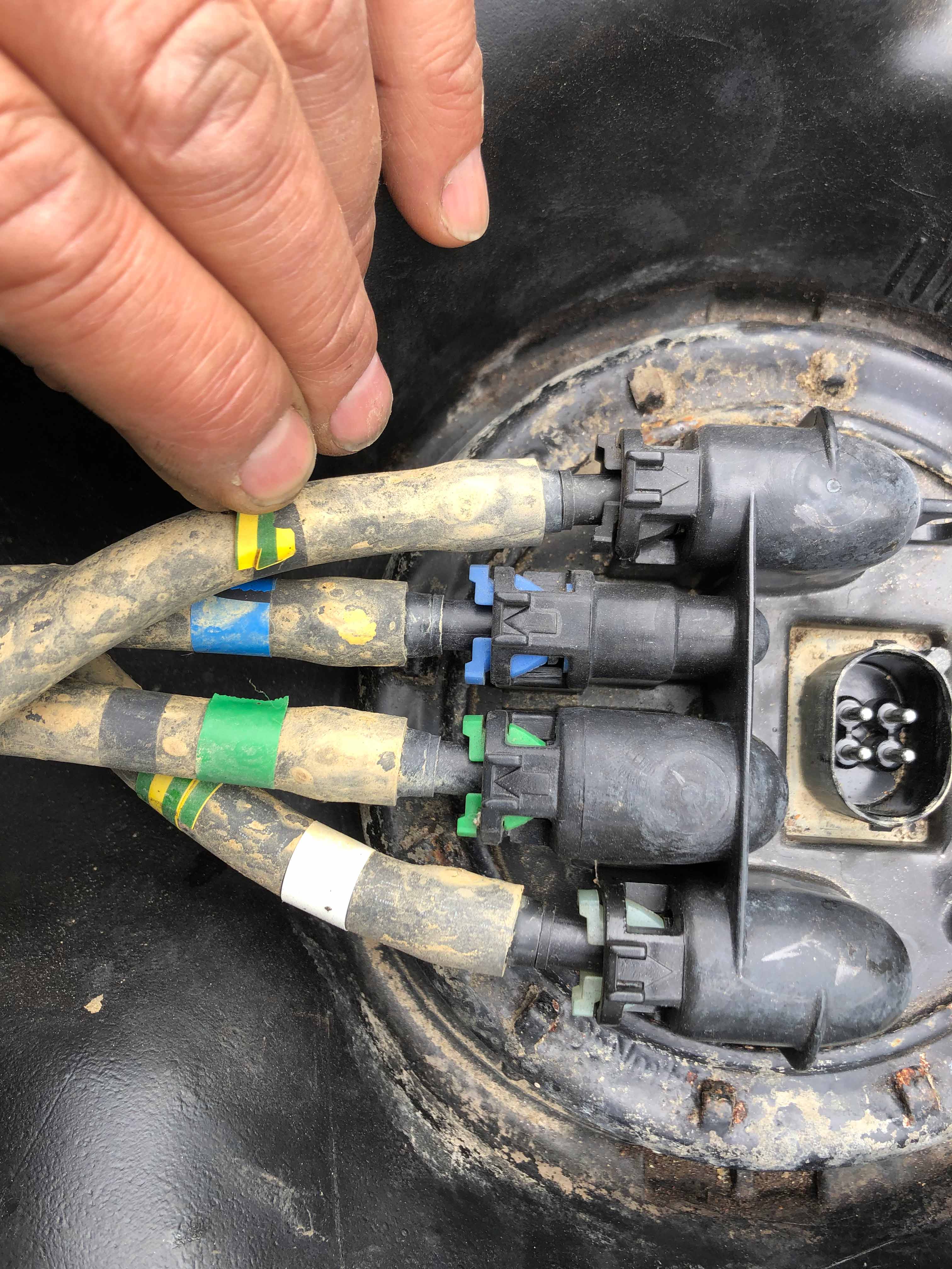 Dans l'ordre on voit , la pompe en place les couleurs du plastique qui sont idem sur la neuve . je n'ai pas fait assez de photos , il faut dévisser le serrage noir en retenant les deux "oreilles" blanches au fond pour ne pas qu'elles tournes aussi . deux gros tournevis deux marteau ( un en contre pour retenir, l'autre pour faire tourner via les différentes petite aspérités du pseudo couvercle . ça vient tranquillement .