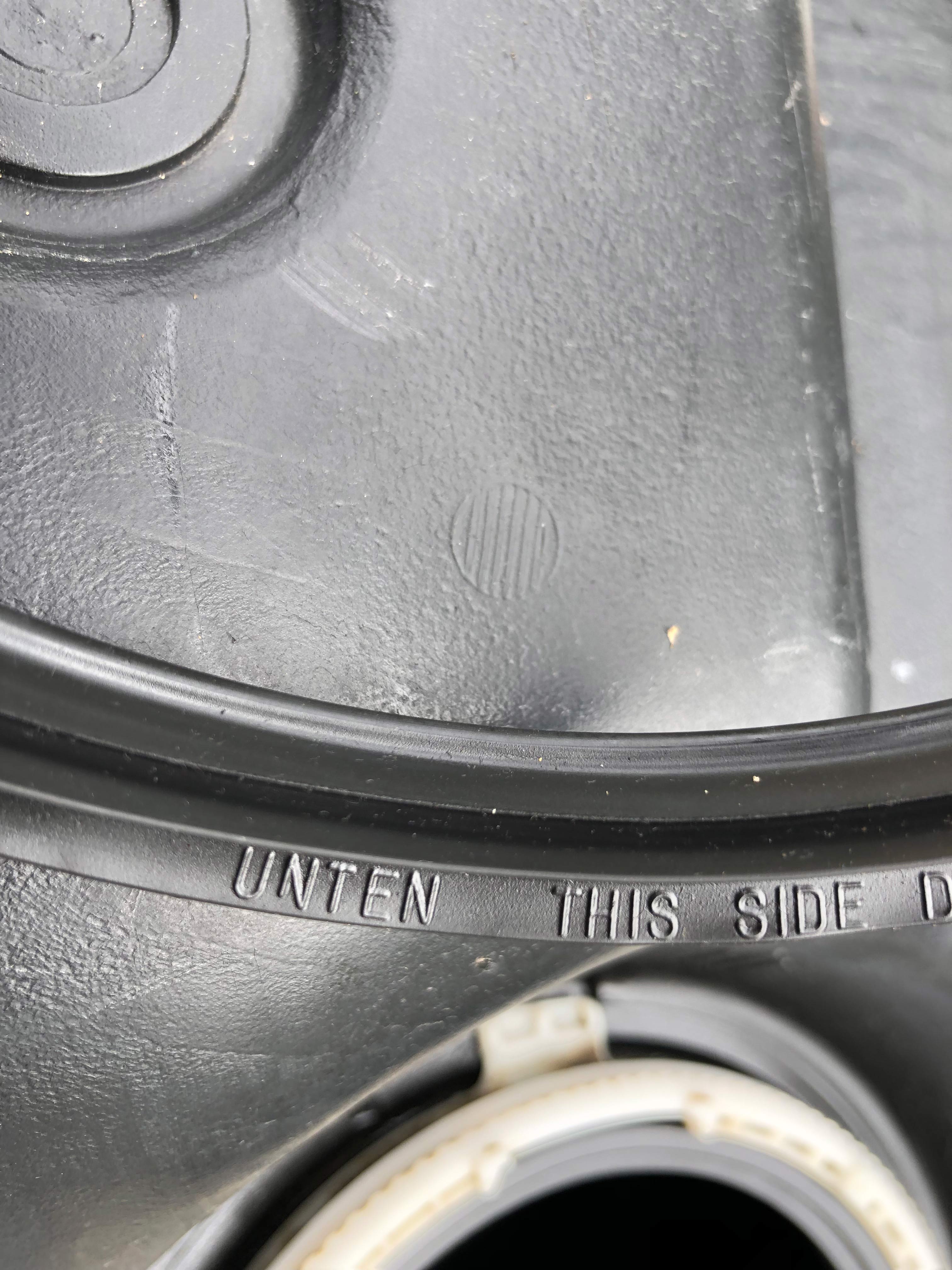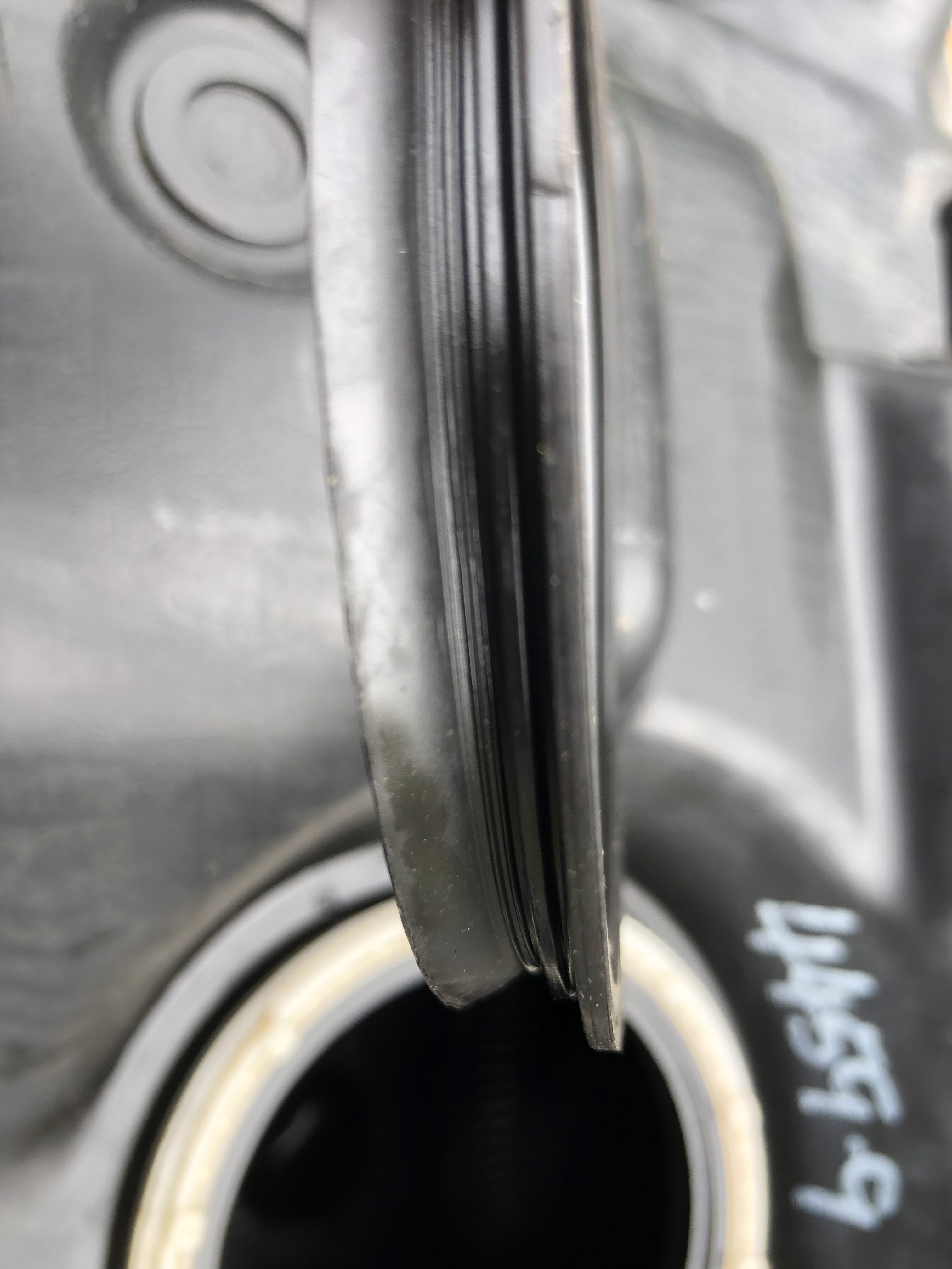 en dessous on voit le joint qui épouse la partie du noir du réservoir et comporte plusieurs lèvres .