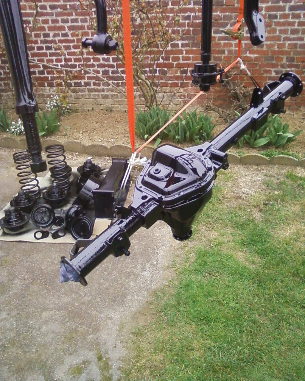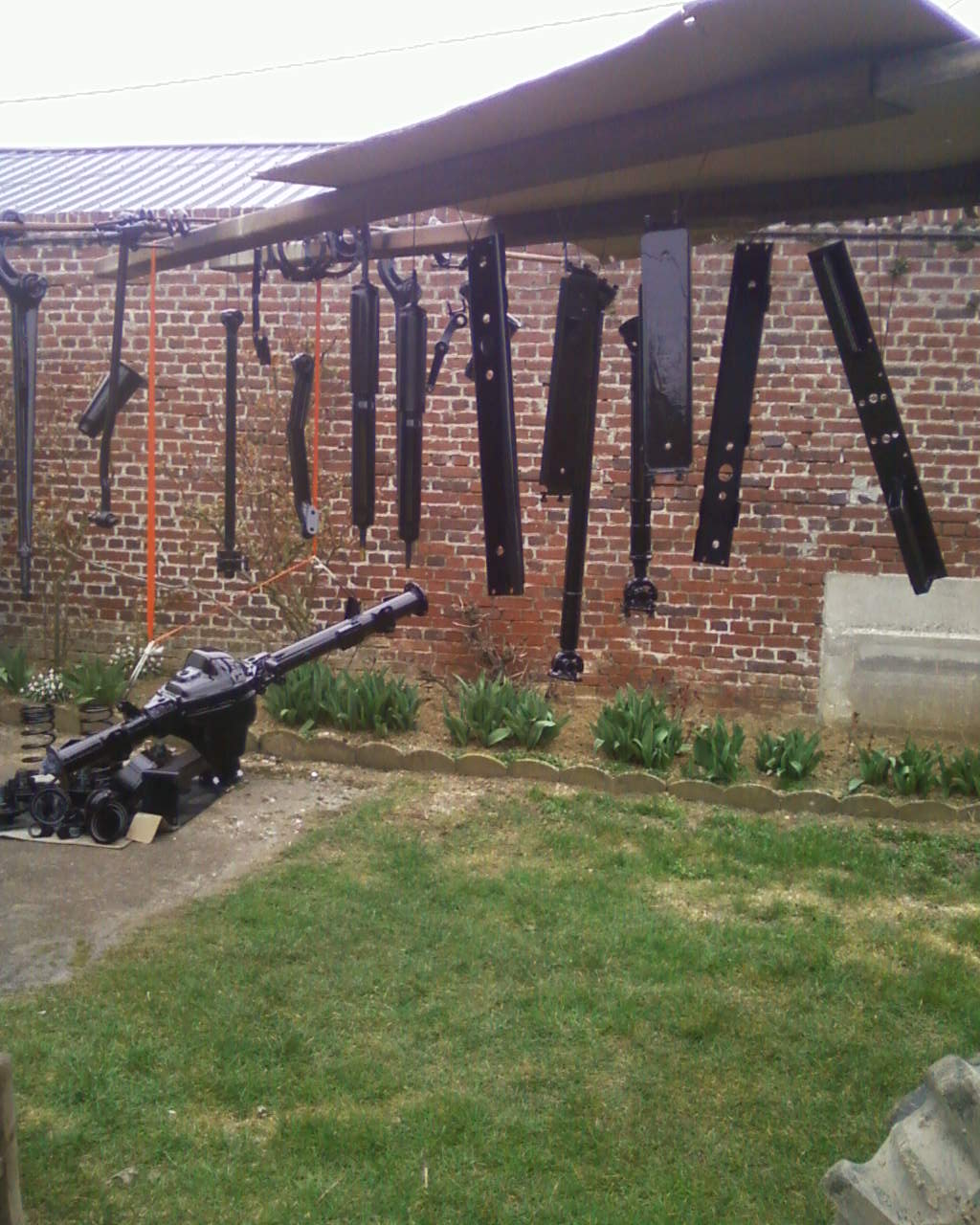 Pour tinkerland, l'ecarteur artisanal, bon que les photos pour l'instant, les cotes sont resté a l'atelier! Sinon, les portes avancent bien, le pont arrière est peint, les roues d'été aussi ainsi que quelques bricoles, et j'ai demonté la rotule arrière car le soufflet été craqué! La suite demain,