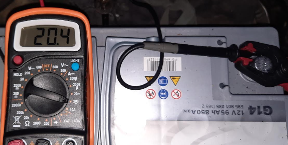 Voilà donc ma prise de mesure, faite ce soir en positionnant le curseur sur 22m Ampères ; la photo n'est là que pour monter le calibre utilisé : J'obtiens 87,0, en branchant la pointe métallique du cordon rouge dans la cosse du câble de masse, et en appliquant la pointe du cordon noir à plat sur la borne négative de la batterie : Voilà, merci à Ze Fifi et à LØLØ de m'éclairer sur cette consommation : est-elle "normale" ou "excessive" ?