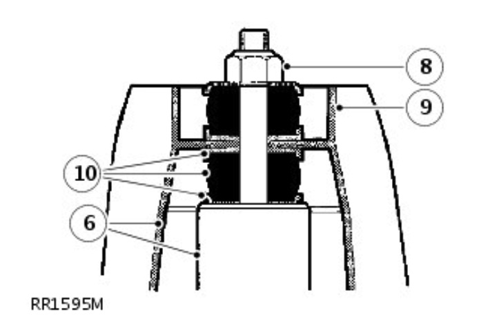 Je ne sais pas si cela peut t'aider à te repérer, voici les schémas que j'ai dans le manuel d'atelier (édition 2010) :fdj a écrit :Est-ce que quelqu'un peut confirmer le sens de montage des caoutchoucs et des rondelles sur les extrémités des amortisseurs avant et arrières ?