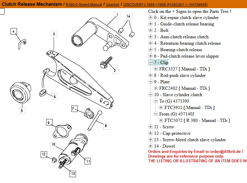 1 - Il est noté en gros et en gras "Ne pas détacher le poussoir ni l'attache du levier" mais Nanard me disait à l'époque quand je pensais changer aussi le récepteurDu coup, je suppose qu'il parlait du clip FRC3327.nanard833 a écrit :n'oublie pas le clip en plastoc qui maintient la tige de commande en place sur la fourchette de l'embrayage.