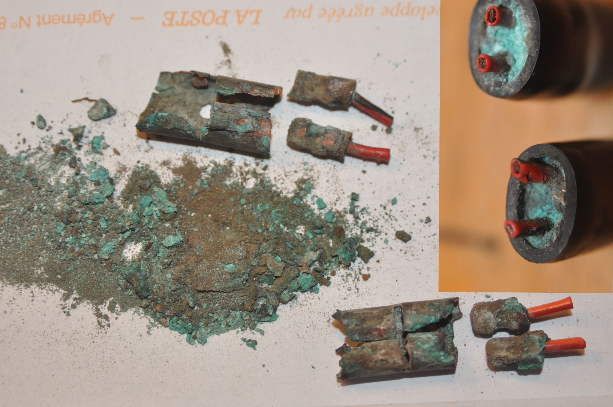 Un exemple d'oxydation, provoquant un problème de continuité, les cosses se désagrégeaient.