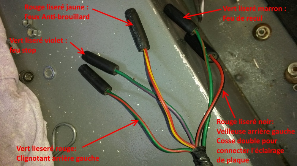 Là, il faut repérer les cosses du feu de recul et voir leur état d'oxydation et de serrage, en les débranchant et rebranchant, oui, je dis les, car il y a non seulement le fil vert liseré marron, mais également sa masse à contrôler.