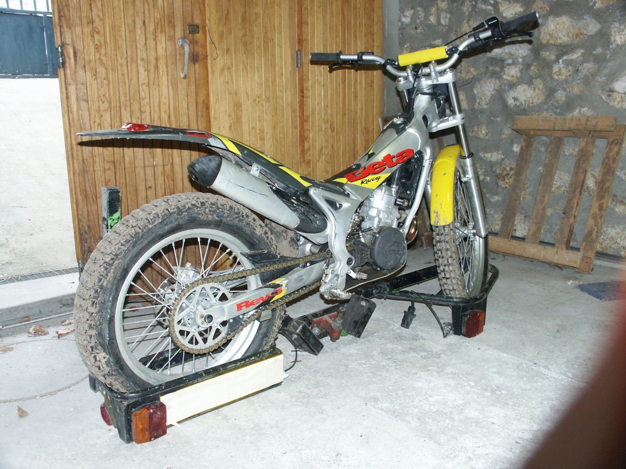 Si on souhaite se rendre sur les lieux du crime sans laisser de trace comme une remorque, c'est de très loin le meilleur système. Par contre, l'histoire de la chaîne est pénible. Il est parfois possible (pas toujours !) d'avancer la roue arrière pour dégager la chaîne sans la déposer. Pour moi, c'est négatif : obligé de monter un maillon rapide sur la O-Ring. Un peu galère à mettre avant de rouler... Par contre, on est pas obligé de faire de la muscu pour accrocher la bécane en hauteur (trial, ça va peut être, mais la Yamaha de 140 Kg, je la sentais pas !)