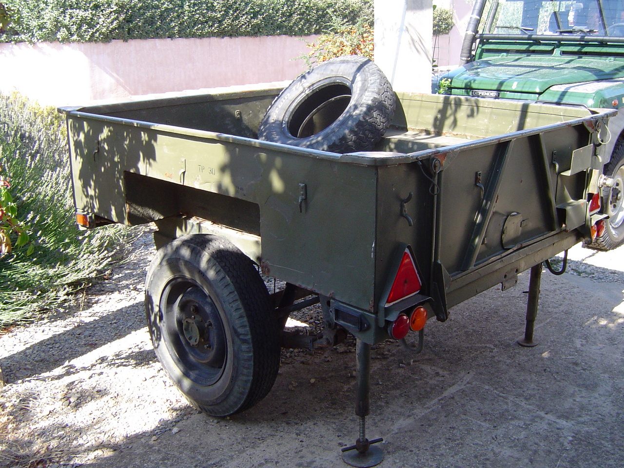 J'ai acheté cette remorque parce que c'est celle qui correspond le mieux, amha, à mon 90".Je compte refaire la benne complètement, d'une part pour l'aménager version raid, et d'autre part parce qu'elle est pourie surtout au niveau des passages de roues.Le chassis et la mécanique sont par ailleur tres sain.