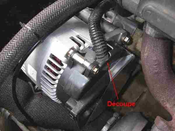 L’alternateur neuf est plus long que l’ancien et l’angle du carter est situé à environ 1cm du collecteur d’échappement et en attendant de réaliser un écran thermique (tôle alu), j'ai mis de l'aluminium adhésif pour réfléchir un peu la chaleur.
