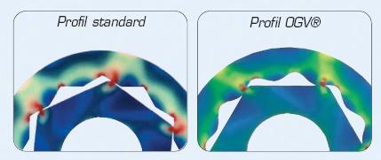 Avec le profil, les contraintes sont plus faibles car la surface de contact sous charge entre l'outil et la tête de vis est augmentée.