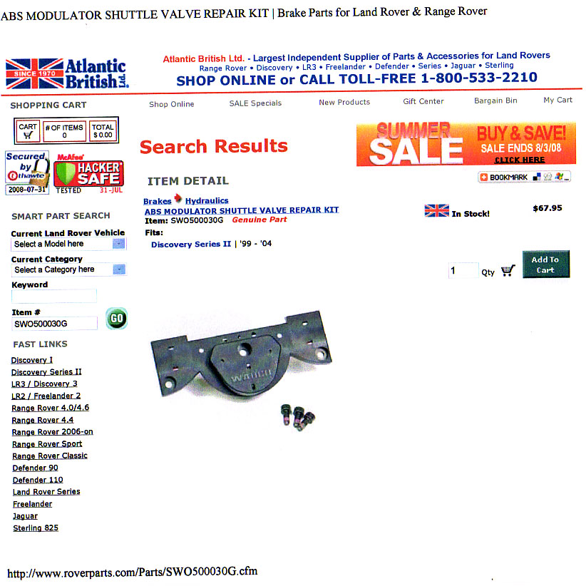 Depuis juin 2007 landrover a emis un nouveau bulletin technique remplaçant celui de 2006 et proposant un kit plus complet sous le nom de grouppe d'électrovannes Ref SWO 500040 mais cette fois au prix de 730 USD ( Le précedent n' etant sans doute pas assez cher)