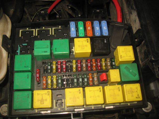 5)Enlever tous les fusibles et les relais. Déconnecter le gros câble batterie en haut à droite sur la photo.