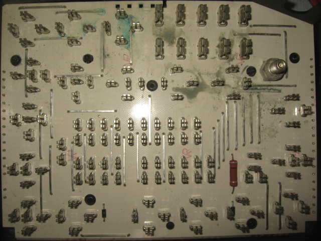 11) Une solution provisoire. Un produit spécial contact. Mais dans l'exemple, vu l'état de la plaque, c'est un pansement sur une jambe de bois. Dans le cadre du remplacement complet du boitier, j'ai quand même utilisé la bombe sur les connecteurs et relais avant de les remettre en place. En tout, 30mn de boulot. A+, bon courage, bonne année...