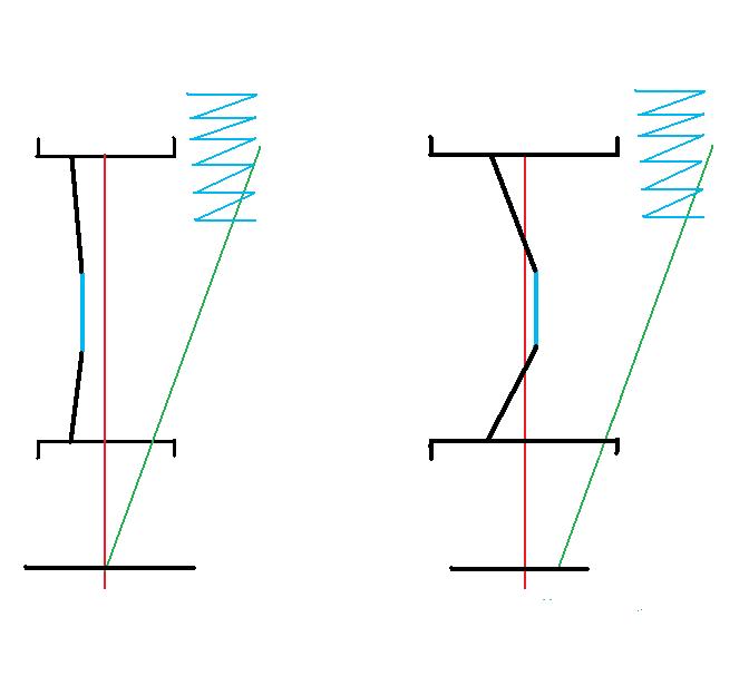 - modification des efforts que doivent supporter les roulements, les pivots, la direction, la suspension et les fusées. En cas de faibles variation des déports, ces modifications peuvent être néfastes ou bénifiques, au-delà d'un certain seuil elle sont néfastes.