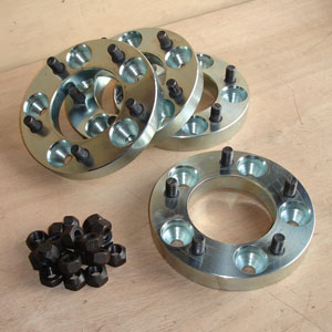 Elargisseur de voie pour Defender : Elargisseur de voie monté sur le moyeu et prêt à recevoir la jante : Attention à la classe de qualité des vis, le diamètre et type de filetage livrés avec les élargisseurs de voie ! De nombreux déserrages ont étés constatés, pas, AMHA, uniquement dus à un manque de serrage.