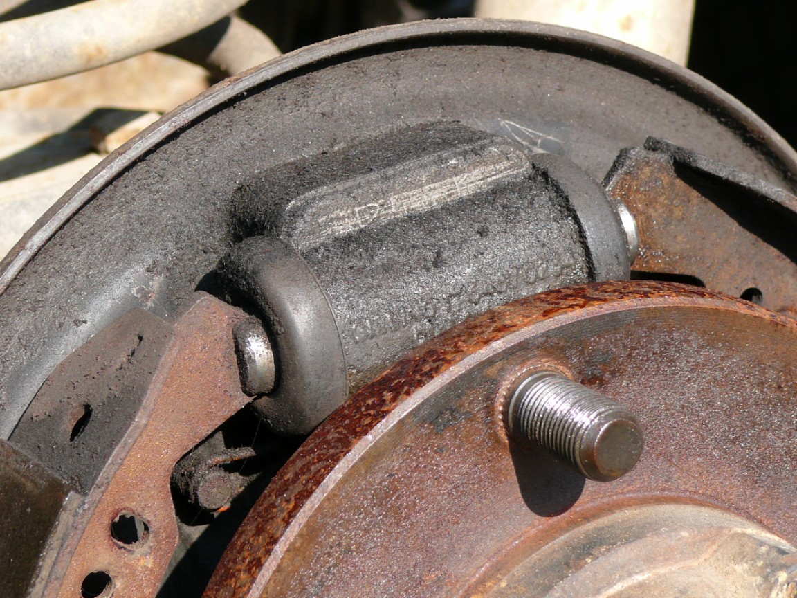 voila ce que je découvre aprés avoir enlevé le tambour sans difficulté mais je constate que les garnitures sont encore bonnes (épaisseur) seul un probléme de fuite génère un mauvais freinage arrière