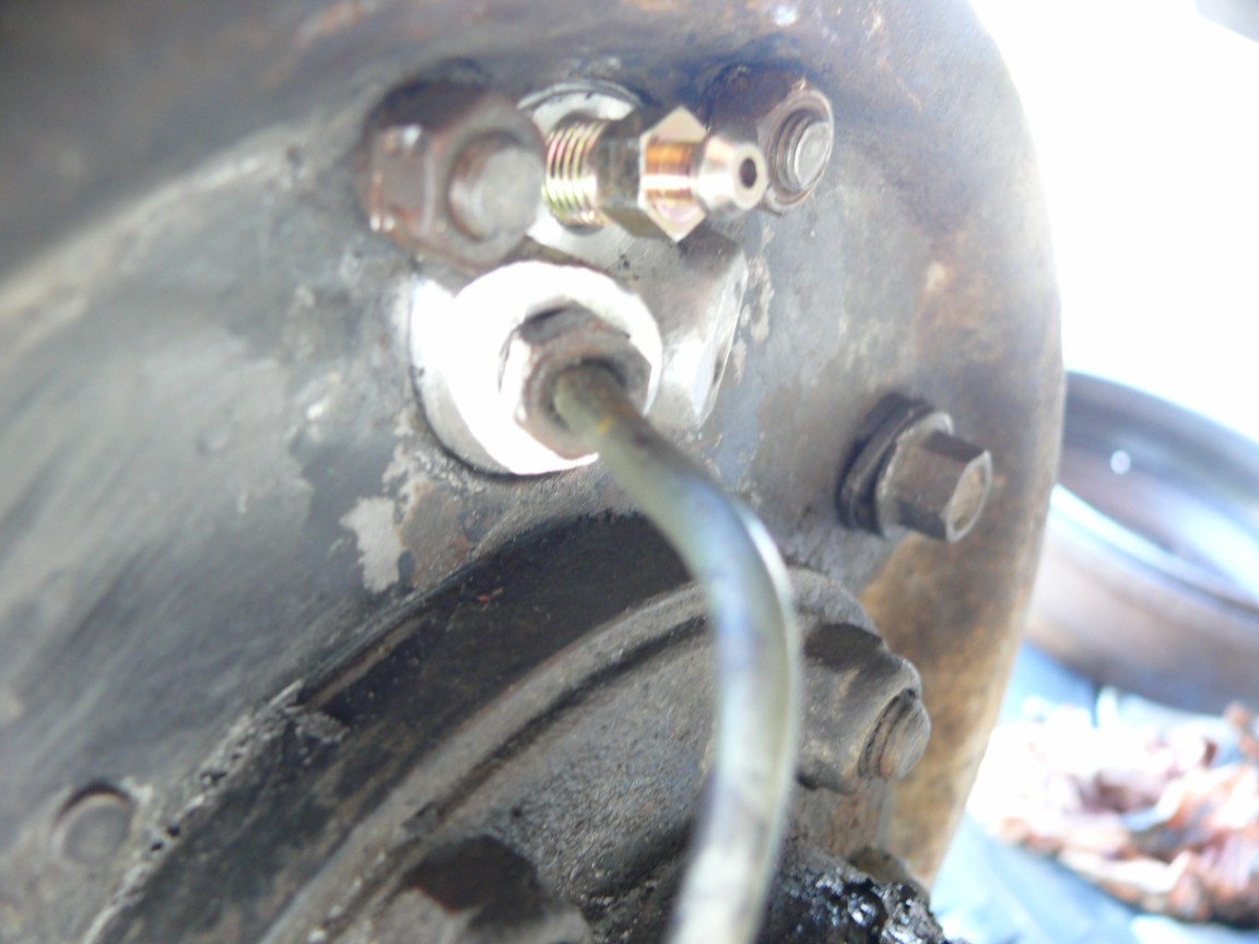 L'arrière avec sa vis de purge et l'écrou de réglage à droite.