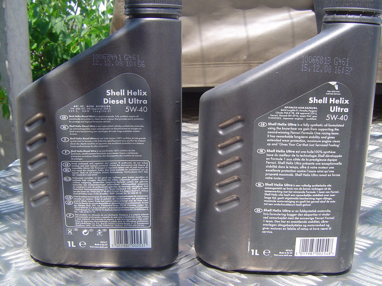 Ce matin je fais la vidange du td5, et en rangeant les bidons vides, je m'aperçois qu'un des bidons ne porte pas la mention "diésel" comme les autres.L'erreur s'est produite lors de l'achat car ces bidons sont quasiment identiques.Le "mauvais" bidon ne comporte toutefois aucune mention, ni "diesel" ni "essence", l'huile est de même grade (5W40) et les normes API et ACEA sont quasi identiques.On peut lire API 5M/CF sur le "mauvais" bidon et API CF sur l'autre.