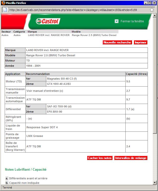 Pour enfoncer le clou, il faut noter que quand Land Rover a cessé de recommander les lubrifiants TEXACO pour passer à une recommandation de lubrifiants CASTROL, la TEXACO MTF94 est restée la préconisation pour la R380. Comment cela ? CASTROL n'avait pas d'équivalent ? Pourtant Castrol à des huiles moteur 10W40 et des huiles de transmission 75W80 GL-4.....
