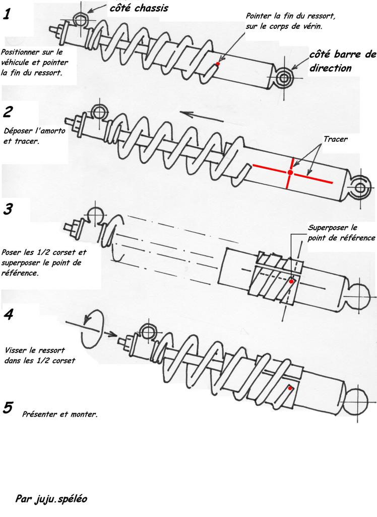 Ce montage rattrape tous les jeux des rotules car sur le Range l'efficacité de l'amortisseur montée derrière le pont est moindre (rattrapage du jeu de la moitié des rotules seulement...)