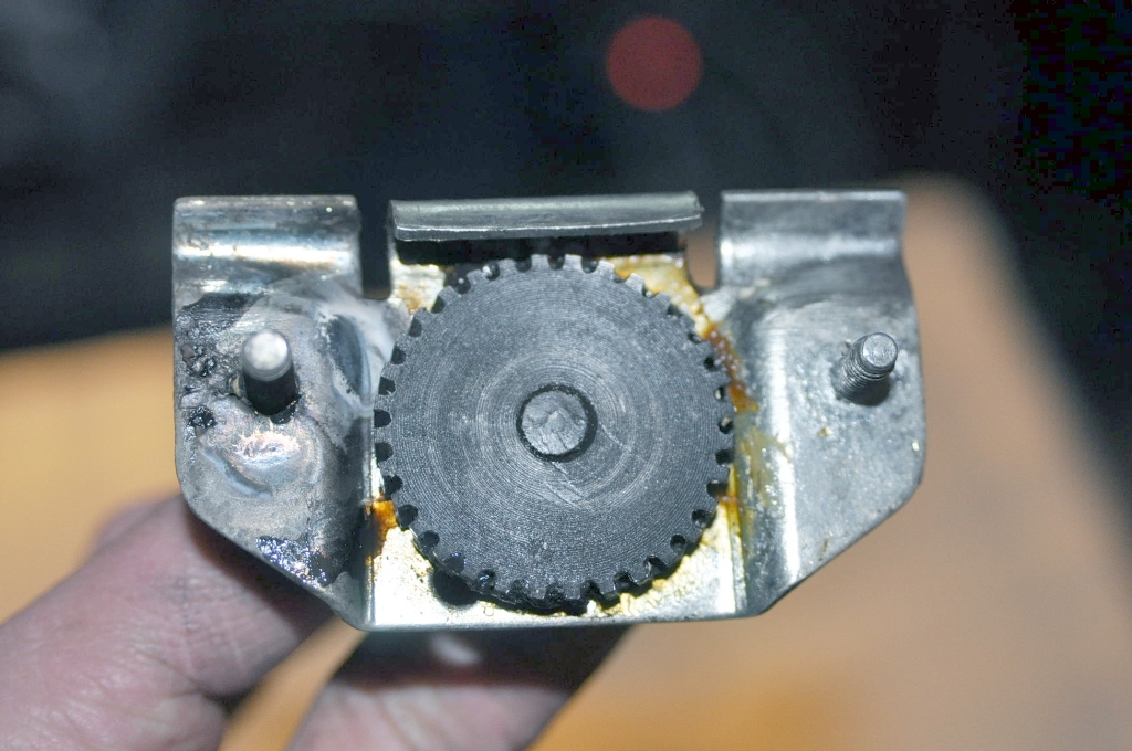 4) Après avoir ressoudé une petite vis, la remise en place du câble. Une hypothèse de ta panne: Le bout de tôle recourbée repère 4, sert à guider et maintenir le câble en contact avec le pignon. Pour sortir le câble, il faut décaler le pignon de 1,5cm environ. Il se peut que ton câble ne soit plus plaqué correctement à cause de l'usure ou de la déformation. Dut au gèle par exemple, car avec la force du moteur, si l'axe est bloqué, il y a déformation du câble qui a tendance à lever ce bout de tôle recourbé, et donc avec le temps, un ripage peut se produire entre le câble et le pignon. Est ce que, si tu aides le mouvement en déplacement l'essuie glace, il va un peu plus loin? Vérifies, si c'est le cas, une pince multiprises peut résoudre ton problème sans démonter le petit mécanisme.