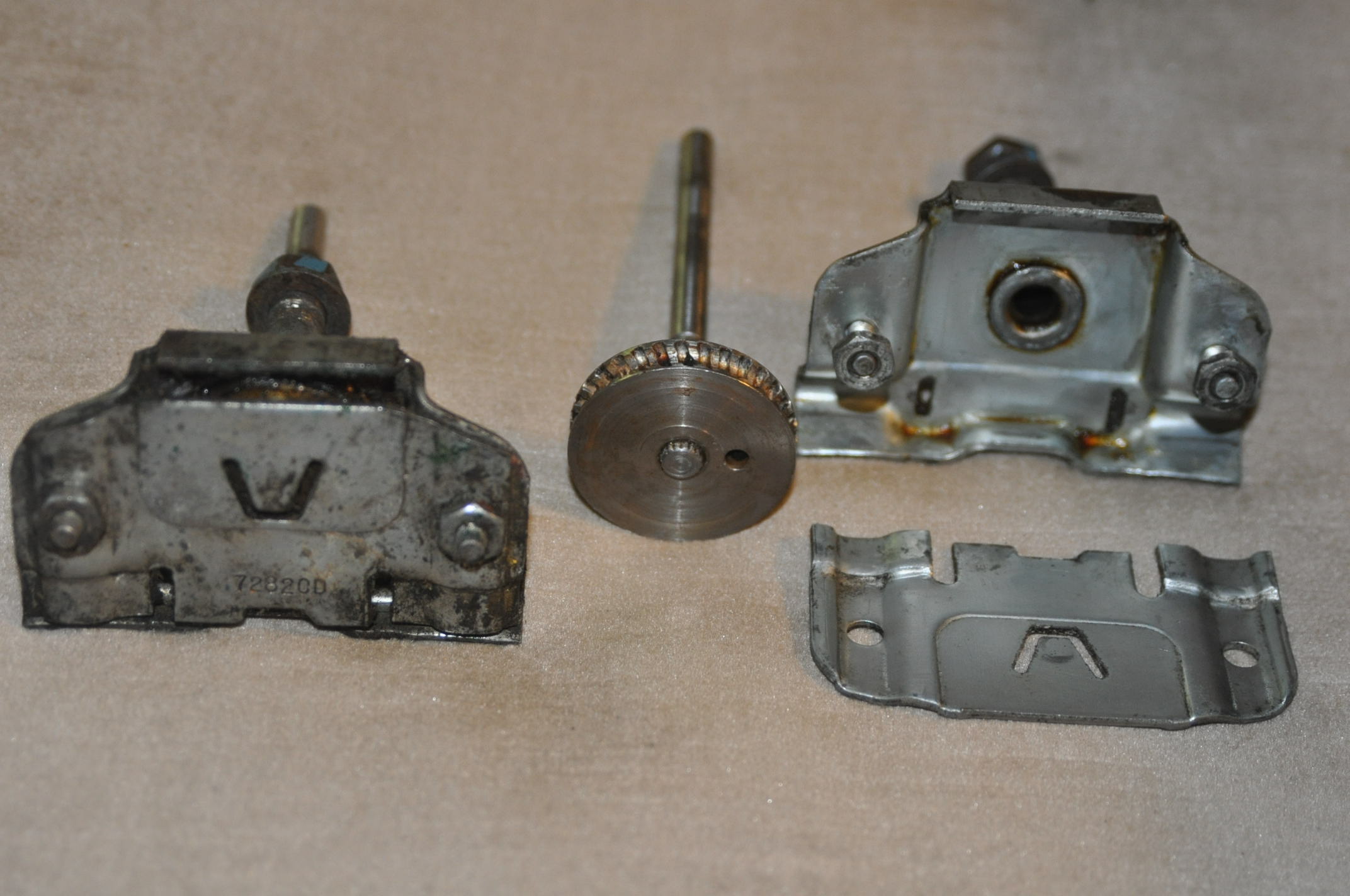 2) Mécanisme de renvoie extérieur. Le mouvement de va et vient du câble entraine un mouvement alternatif du petit pignon au centre duquel se trouve axe de l'essuie glace.