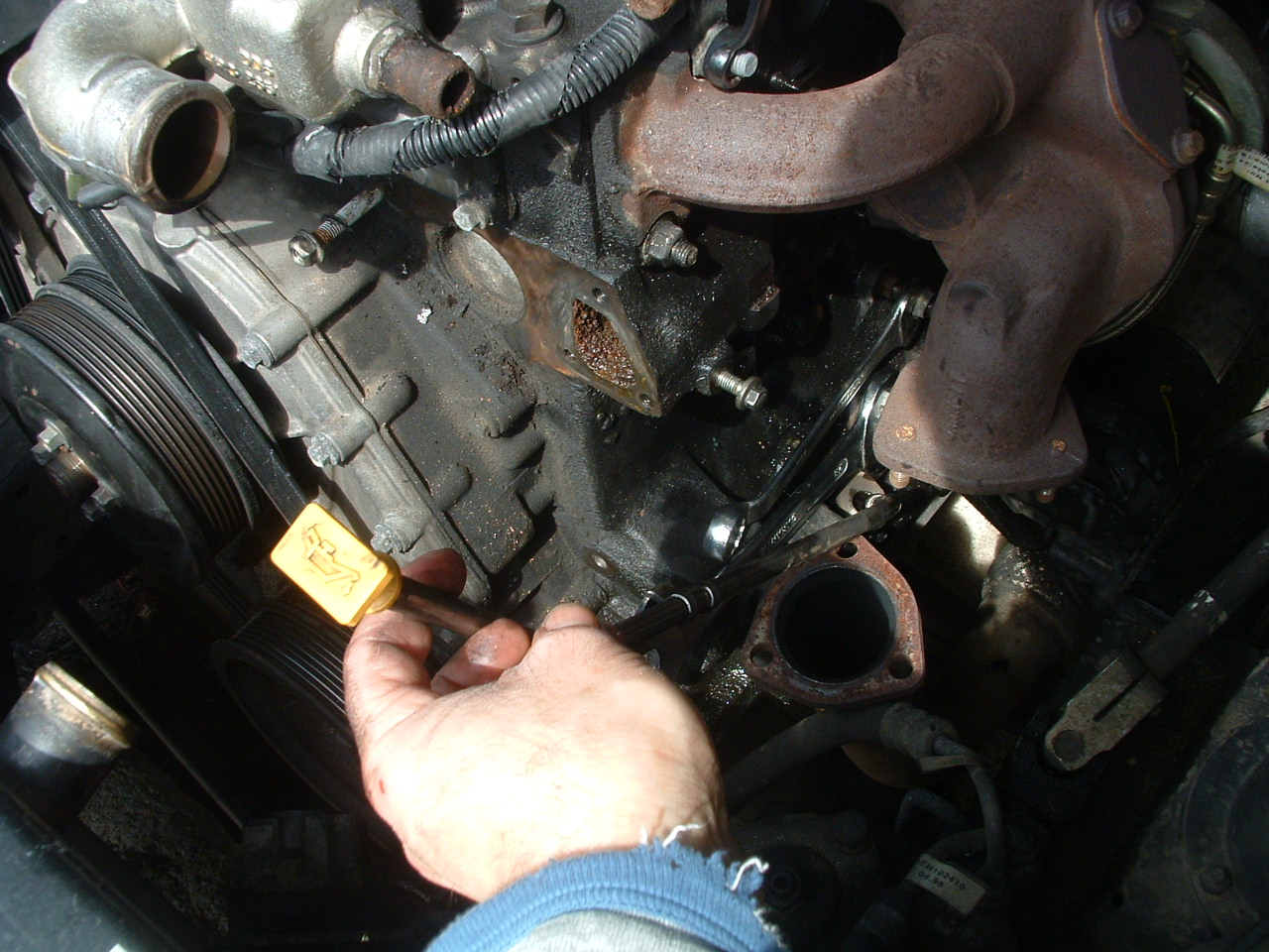 Je me suis attaqué au remplacement des pastilles de désablage du bloc de mon disco 300TDI , et j'en profite pour "faire" le joint pistolet entre support de pompe et bloc.