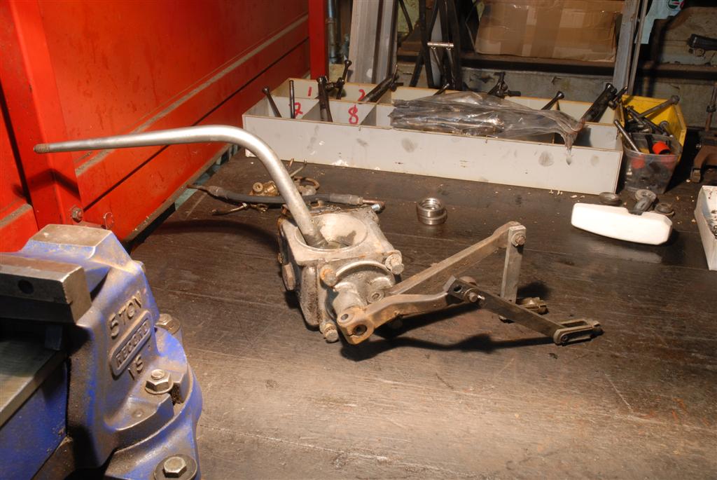 J'aimerais aussi pouvoir placer le levier de commande beaucoup plus loin en avant et à gauche, pour limiter son encombrement, et éventuellement faire en sorte qu'il soit monté sur une partie solidaire de la caisse et non du moteur. De plus, en l'état actuel l'ouverture du capot est un peu acrobatique (le levier passe par le centre du capot)