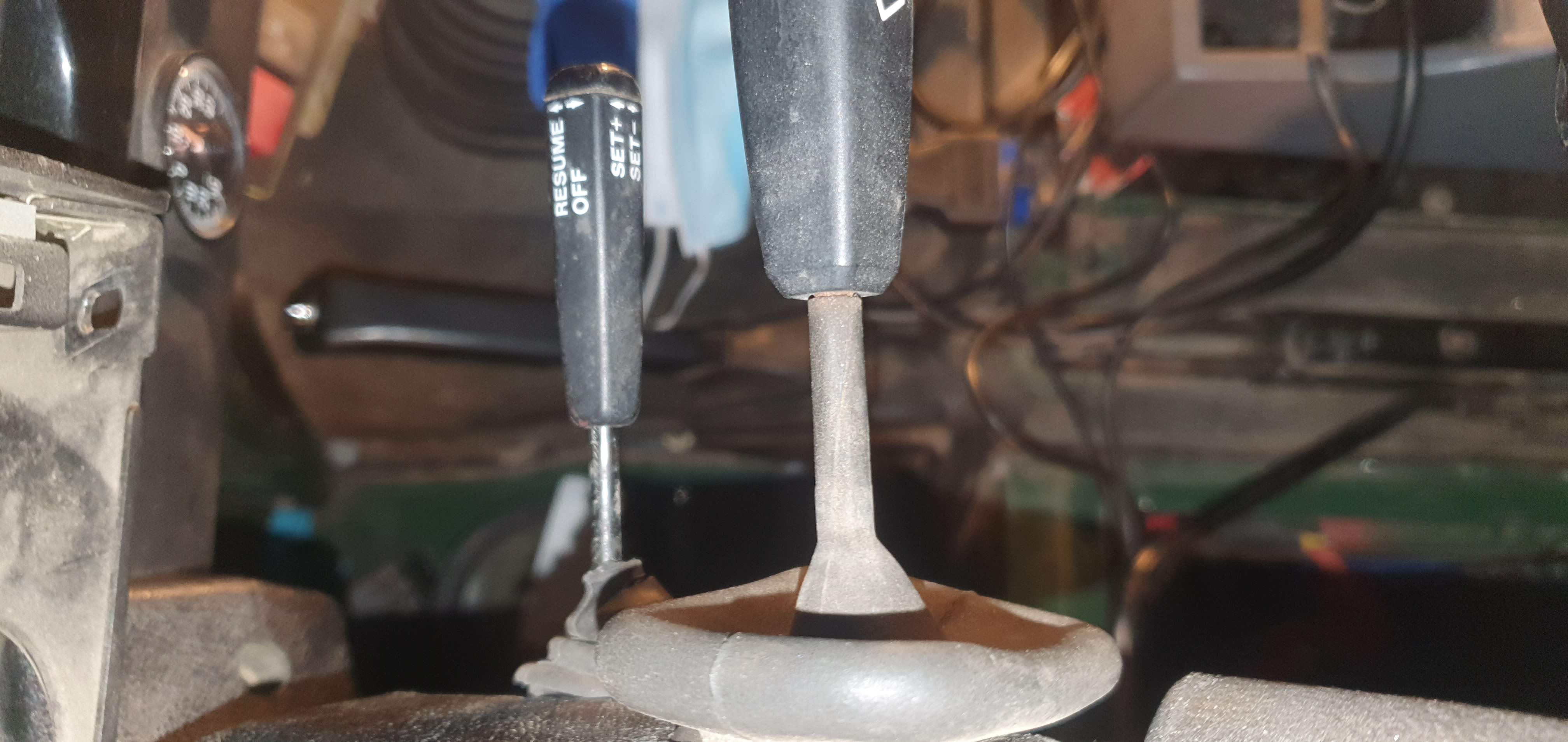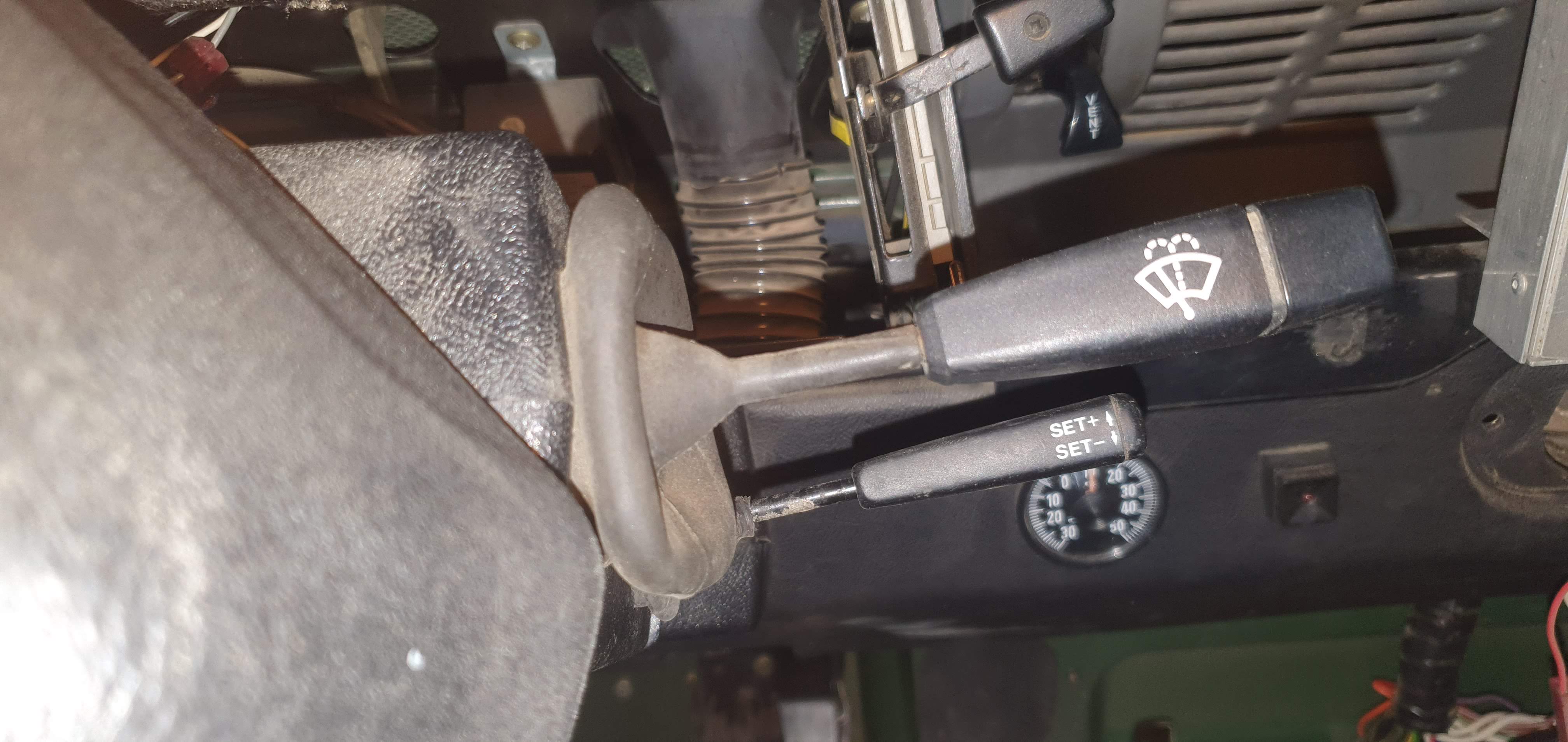 J'ai trouvé une commande de régulateur d'occasion, issue d'un camion VOLVO. J'ai pu l'installé à droite du volant, il y a déjà une découpe dans le plastique et un emplacement de libre dans le support des comodos. Franchement, on dirait que c'est fait pour être monté dans un Defender ! Sinon, j'ai lu que la modification ne marchait que pour les Def TD5 EU3 (après 2002). Mon Def est un TD5 EU2 (avant 2002). J'ai cependant un calculateur NNN000120 dans lequel j'ai injecté le soft EU2. Est-ce que le fait d'avoir un calculateur NNN000120 suffit pour rendre avoir la fonctionnalité du régulateur de vitesse opérante ?