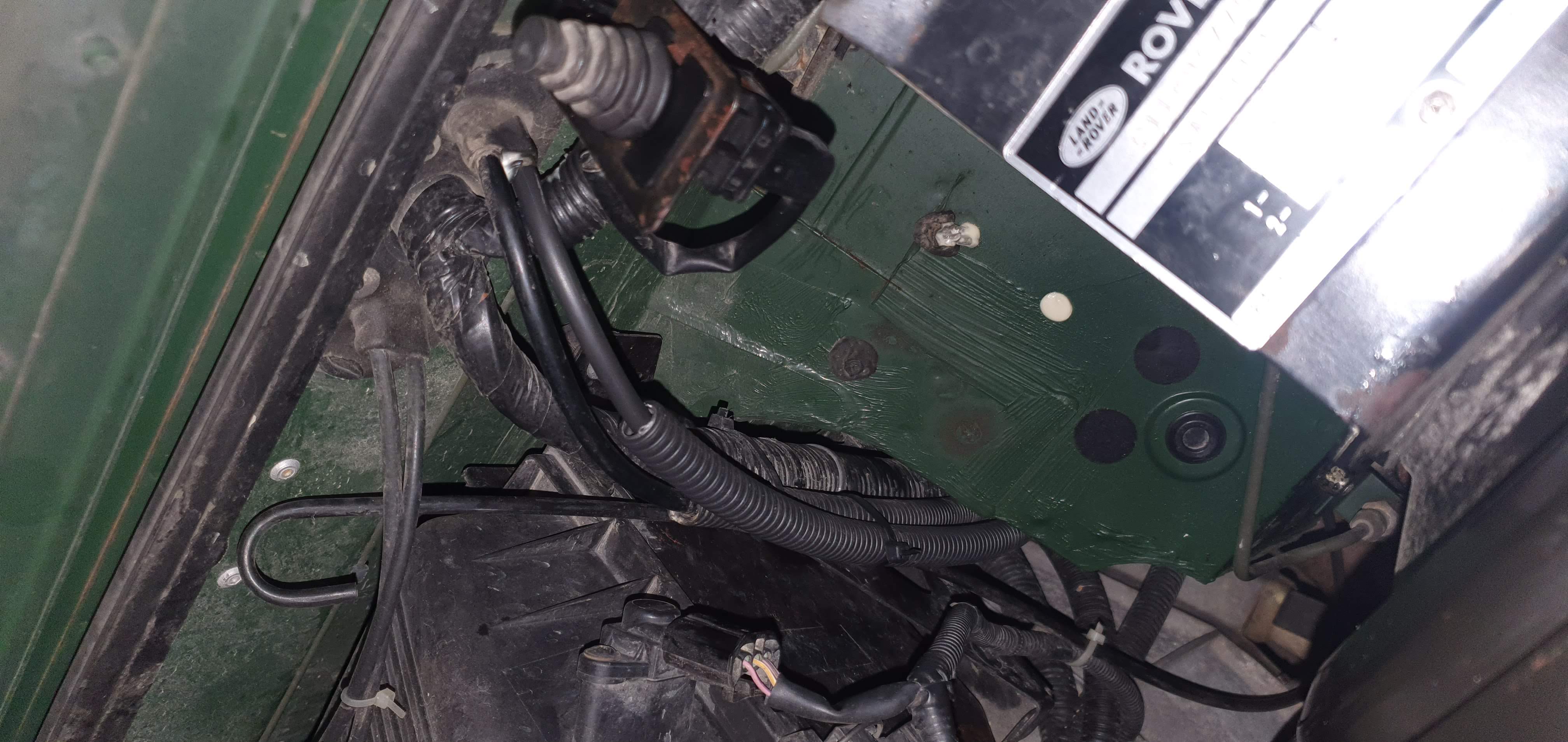 Passage du câble dans le compartiment moteur derrière le tableur de bord :