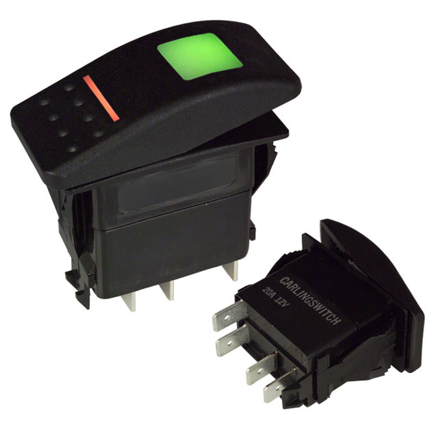 Tu as des interrupteurs "Carling", type Rocker switches "Contura II". De très bons interrupteurs, mais difficiles à trouver à l'unité en France. Tu les as certainement commandé chez Mud.