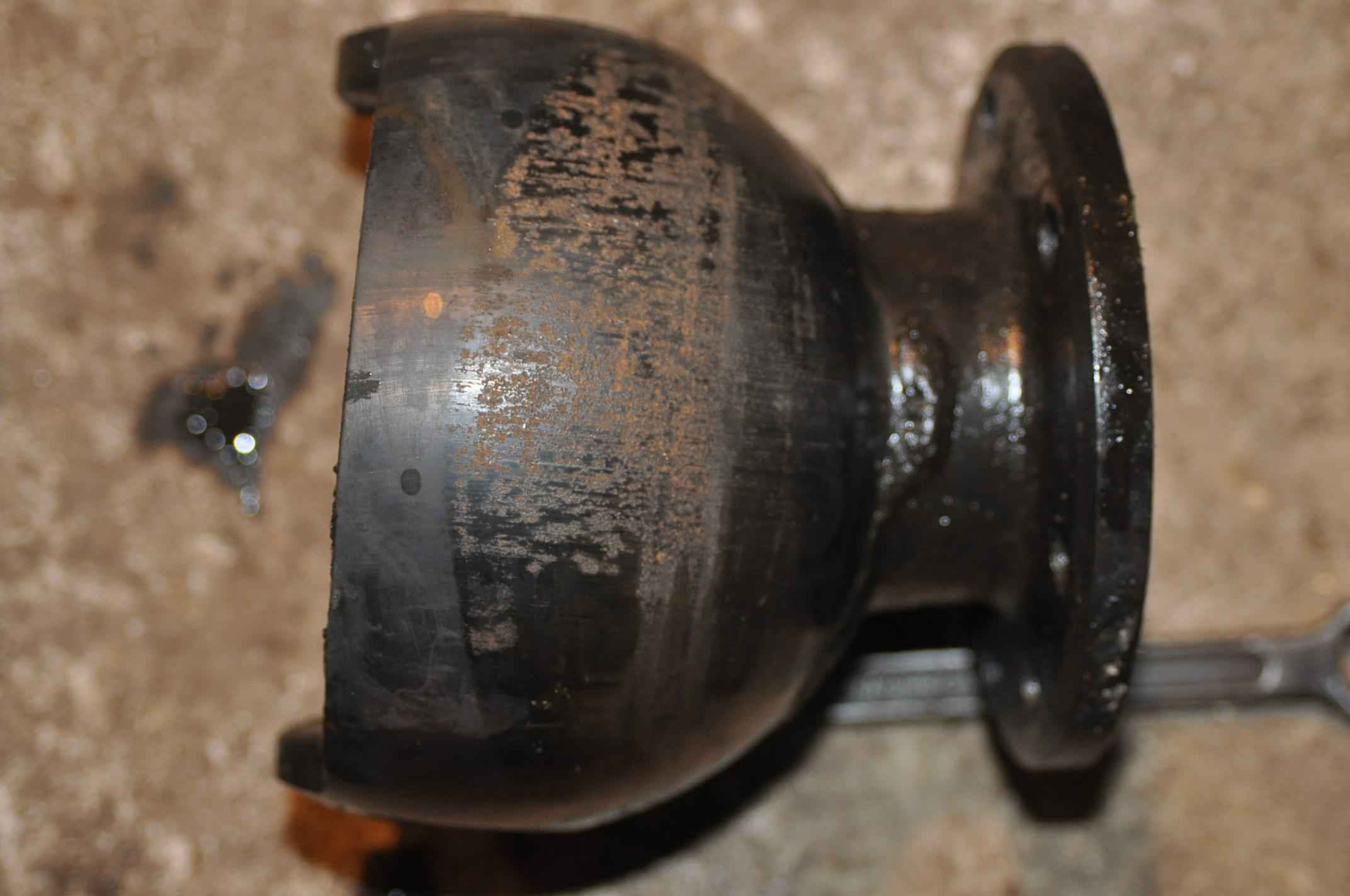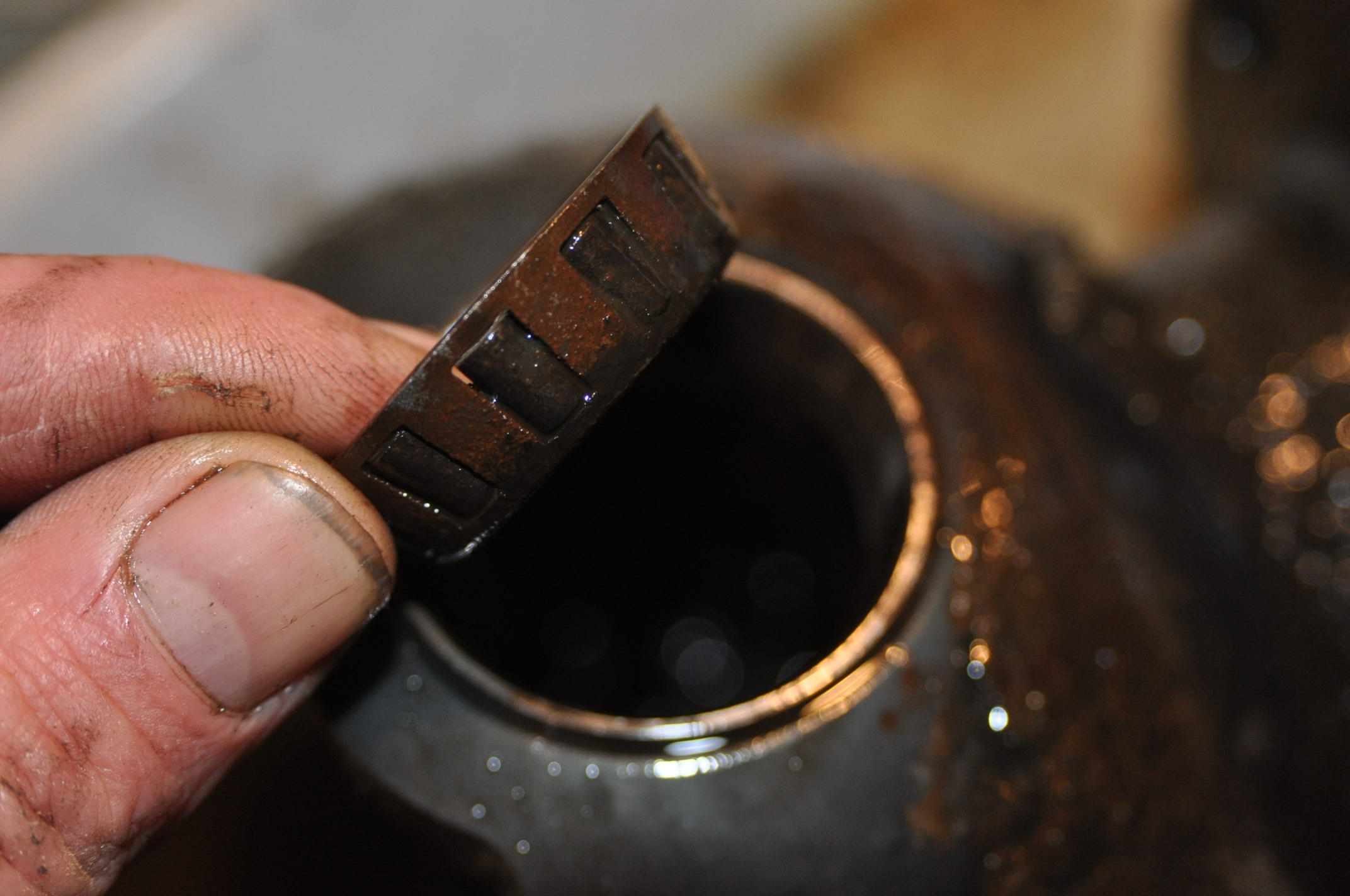Remarque: j'ai pu sortir le bol sans démonter le pivot inférieur. 11) L'autre partie du roulement inférieur dans le bol. Le chemin de roulement à l'air beaucoup plus sain que le supérieur.