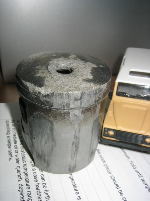 La chambre correspondante sur la culasse présente des petites gouttes d'alu fondu :