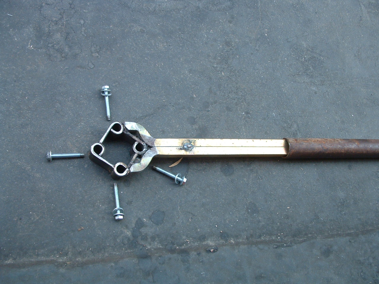 trouves toi un poste à soudure 4 gonds de volets de la ferraille et un long bout de tube type arbre de transmission fichu et......le tour est joué