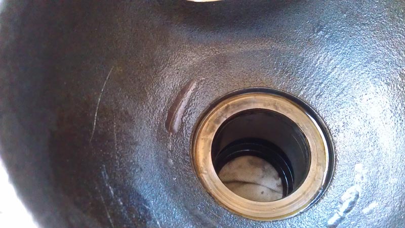 Au fond du bol au niveau de l'orifice de passage de l'arbre il y a un usinage sur la pièce d'origine pour accueillir la bague bronze de butée d'arbre de transmission. Sur le bol paddock il y a un petit usinage conique mais la surface sur laquelle la bague bronze s'appuie est "brute de fonderie".