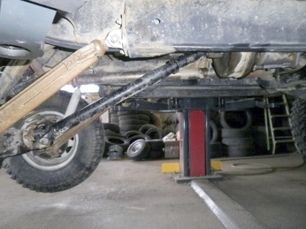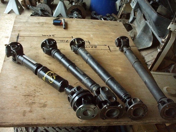 C)- Et la 2ème tout aussi pragmatique mais moins précise tout de même: débrancher les arbres coté pont et les laisser pendre ainsi dans le vide pour en voir leurs angles max supportables avant que les mâchoires ne viennent en contact les unes contre les autres, arbre en rotation sur lui-même à la main..leviers de vitesse au neutre et frein à main desserré, land à l'arrêt sur une surface plane.
